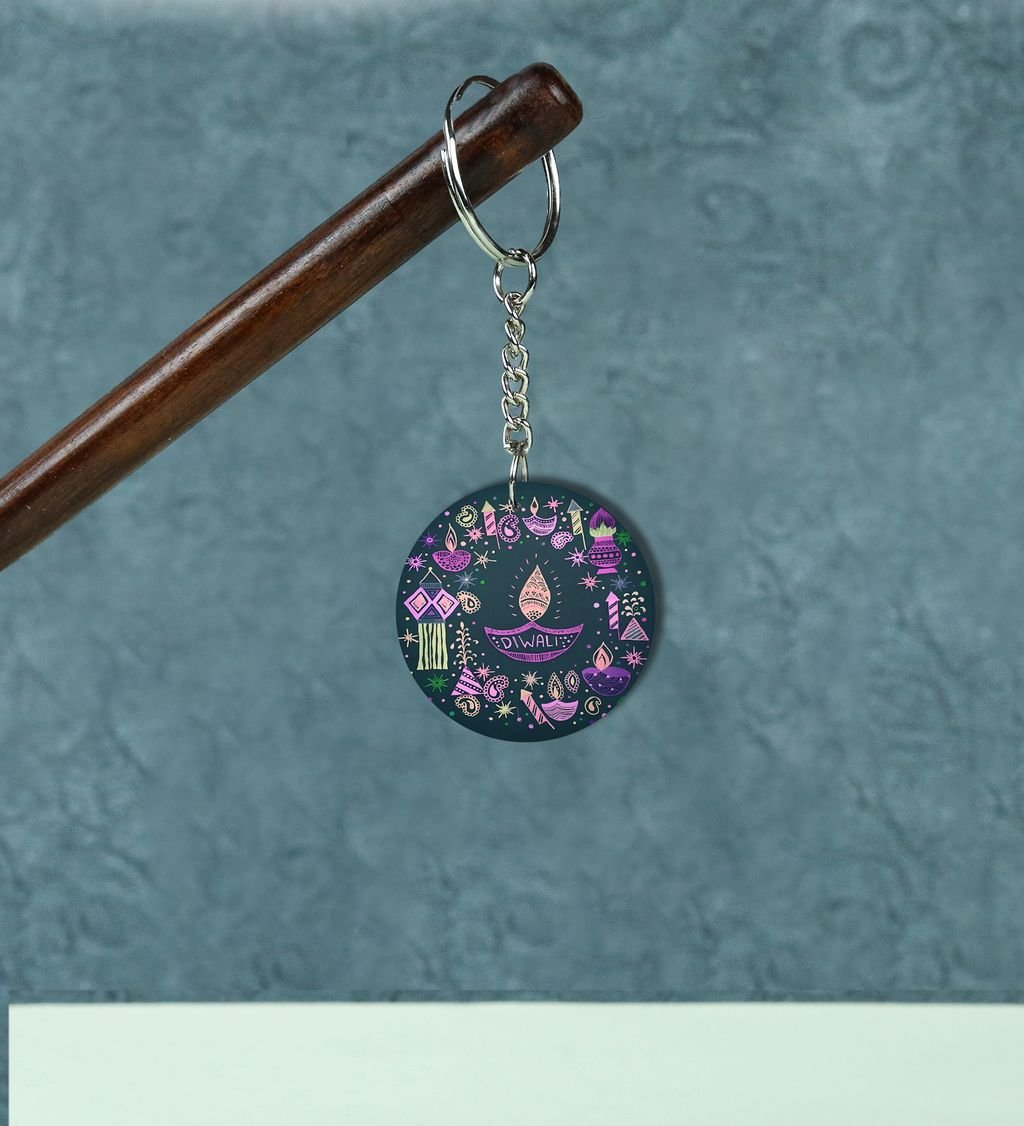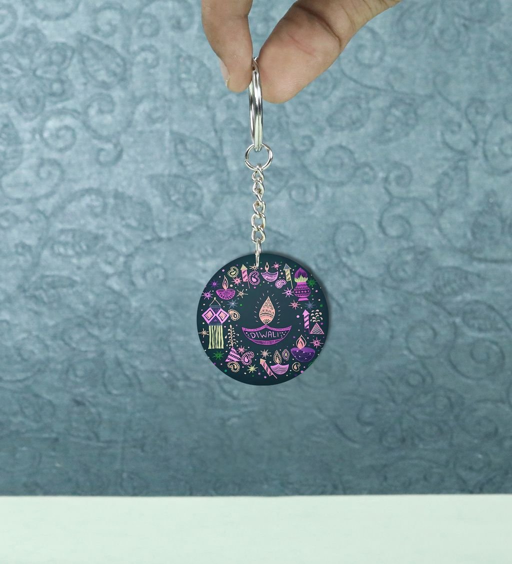 Auspicious Fireworks Shine Diwali Printed Round Keychain Pack of 2