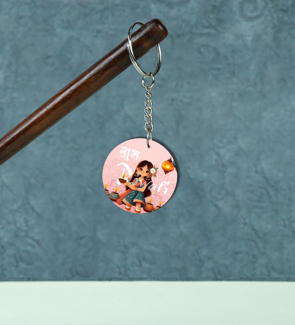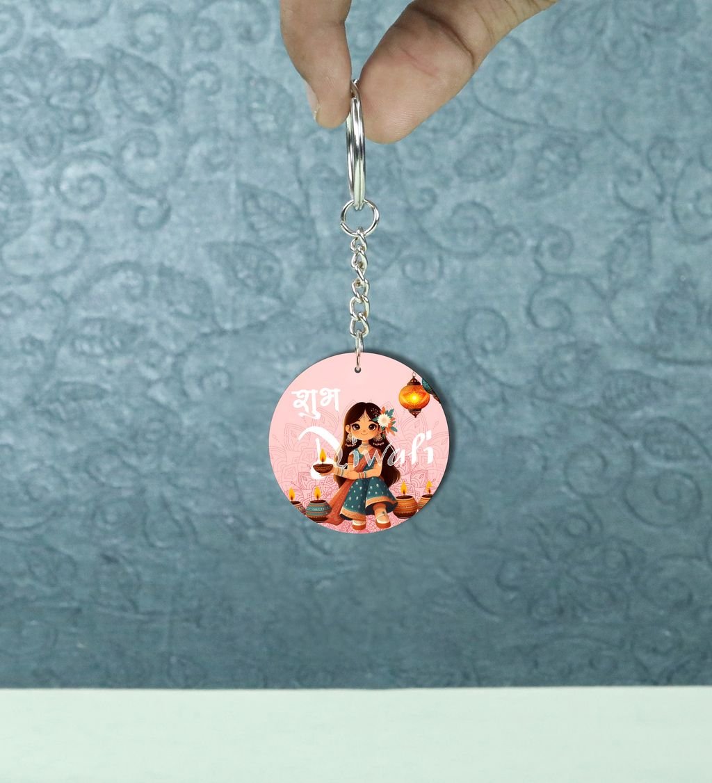 Auspicious Lamps Festival Diwali Printed Round Keychain Pack of 2