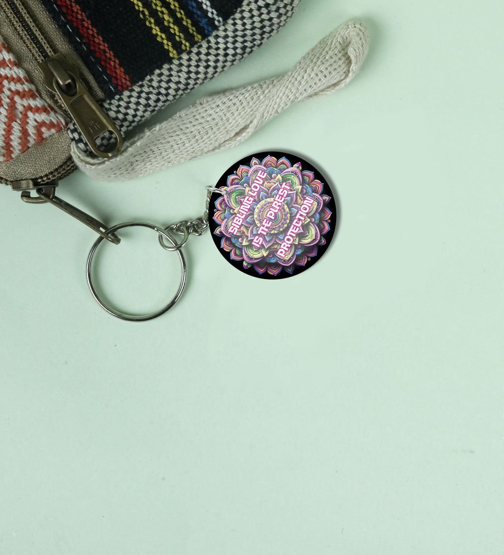 Beautiful Art Representing Pure Sibling Love Printed Round Keychain Pack of 2