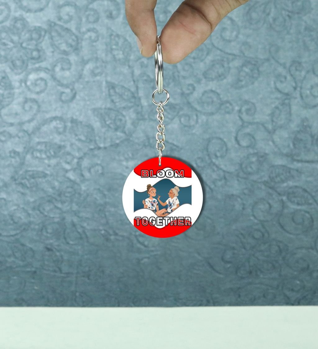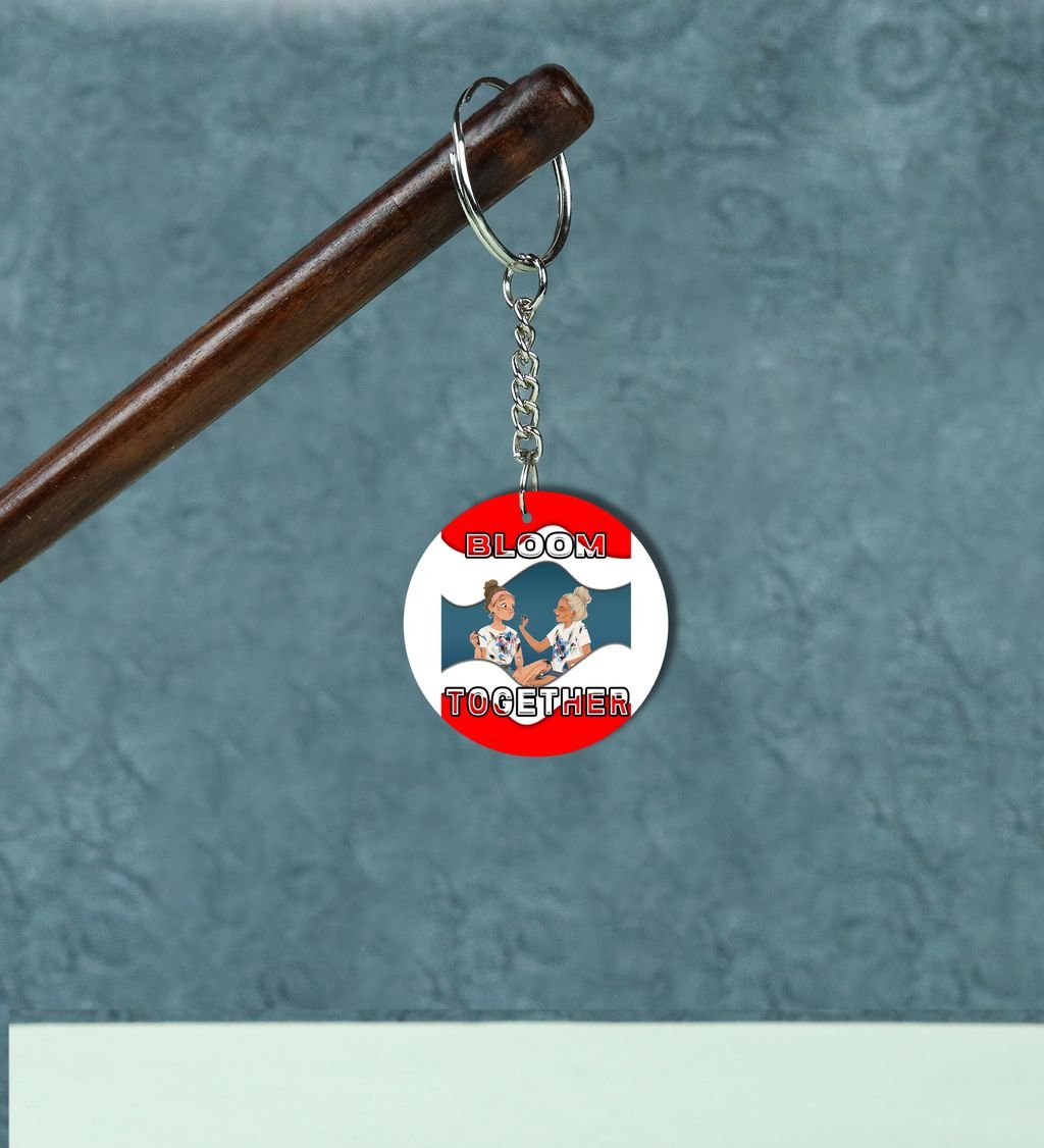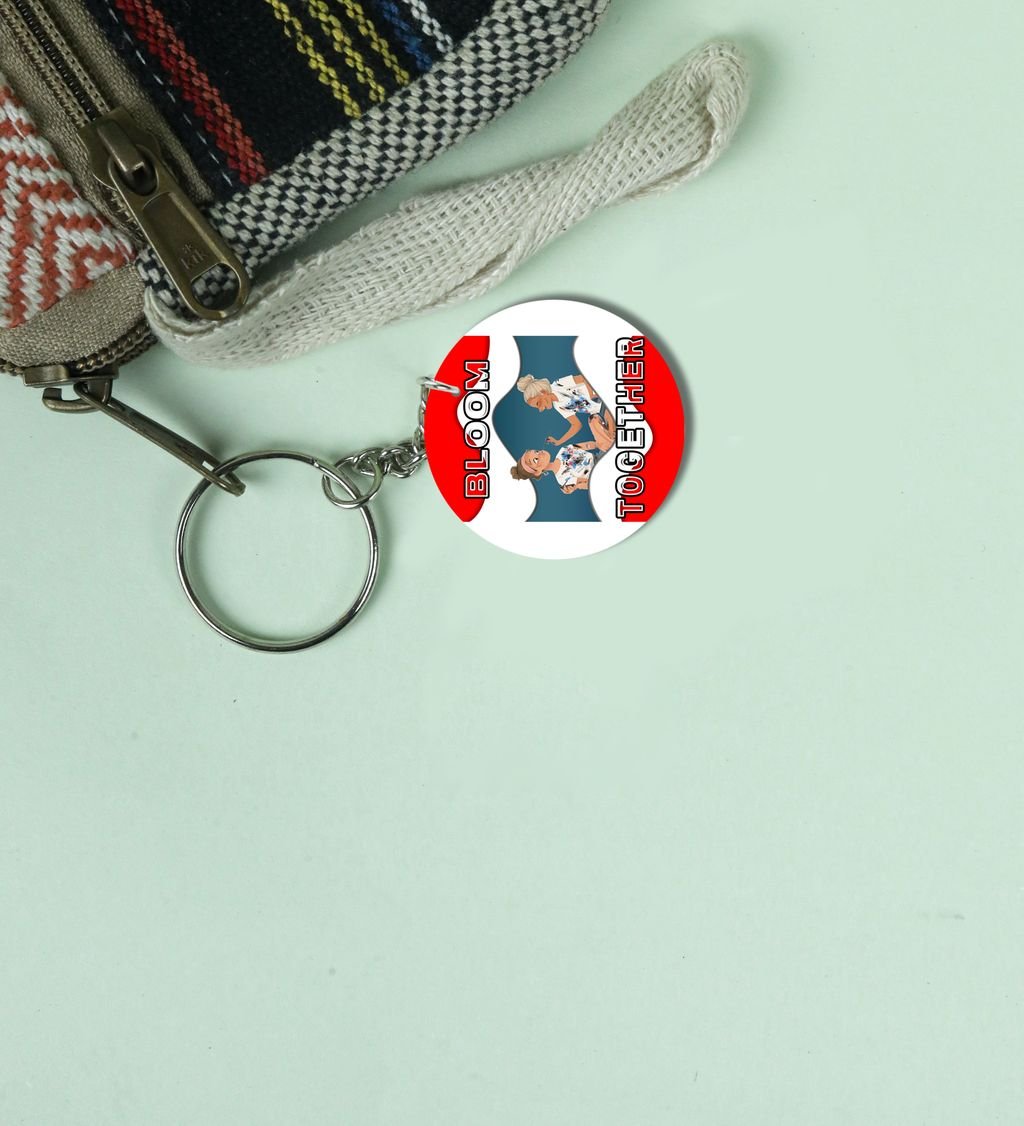 Bloom Together Theme with Cute Art Style: Printed Round Keychain Pack of 2