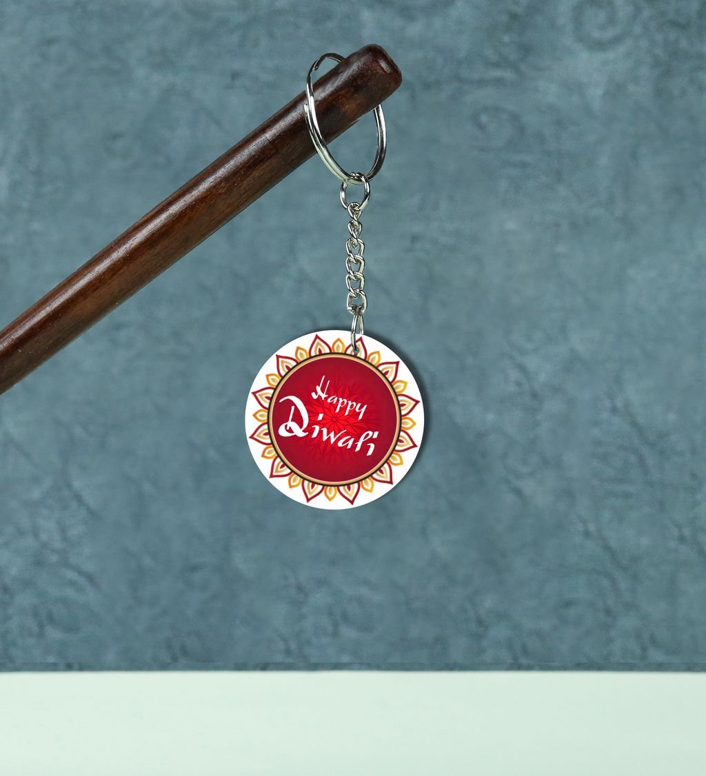Bright Firecrackers Celebration Diwali Printed Round Keychain Pack of 2