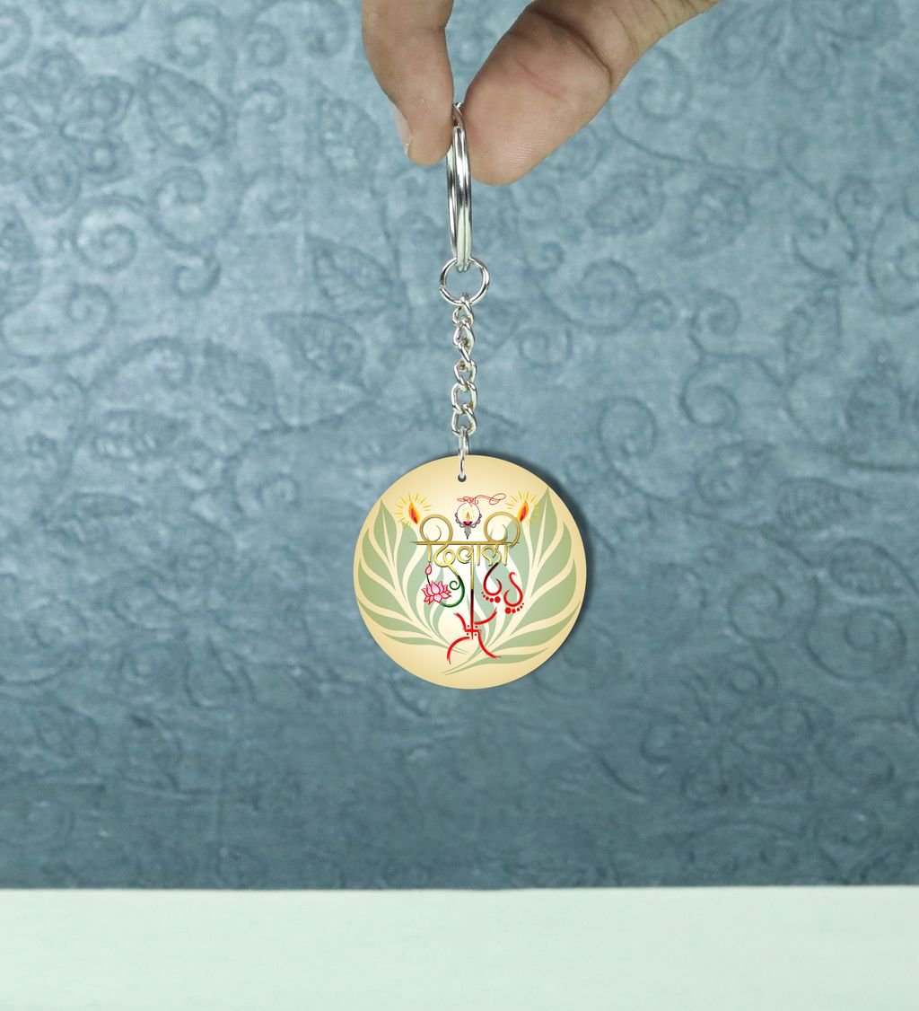 Celebration with Diyas Diwali Printed Round Keychain Pack of 2