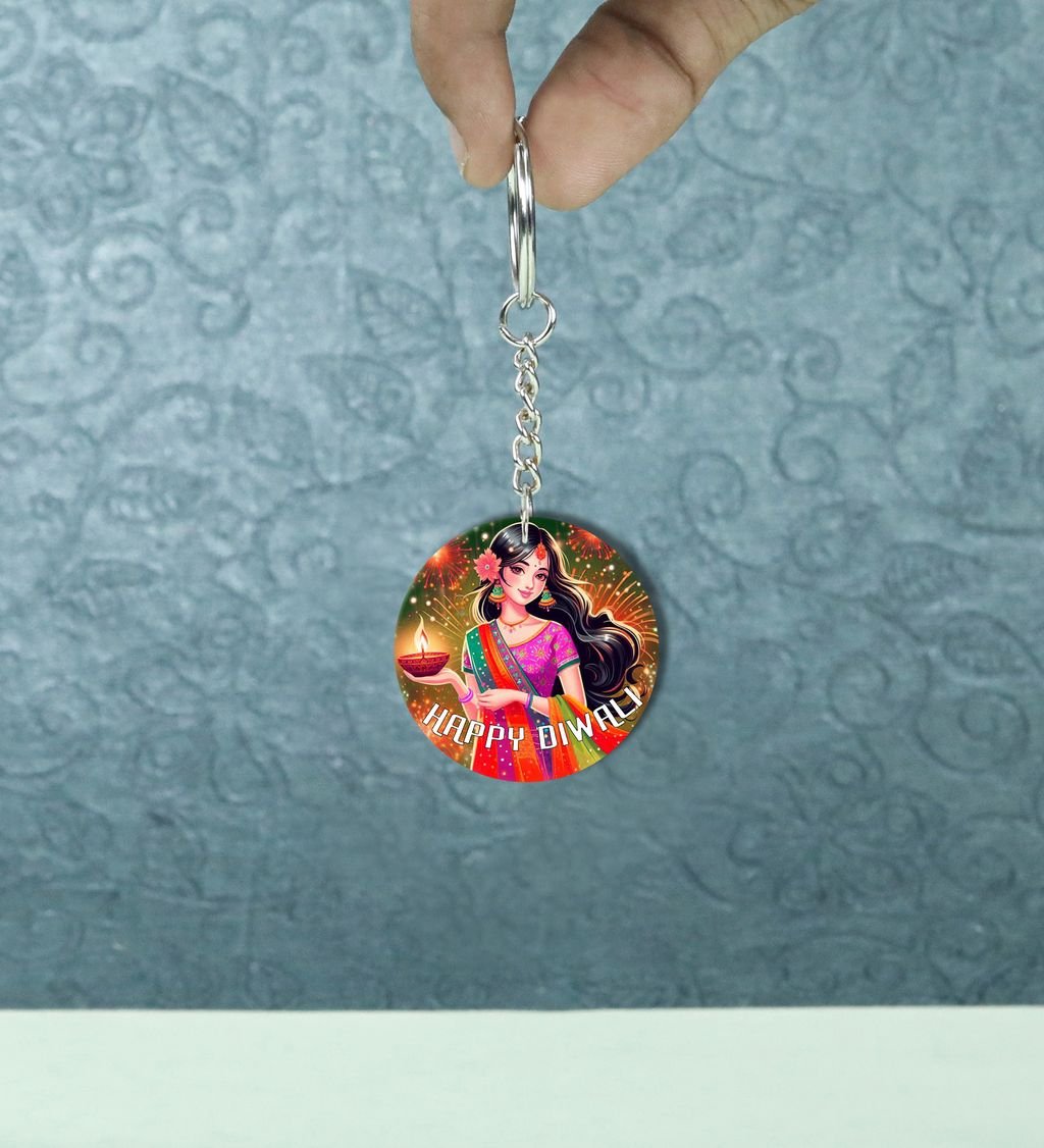 Colorful Rangoli Art Diwali Printed Round Keychain Pack of 2