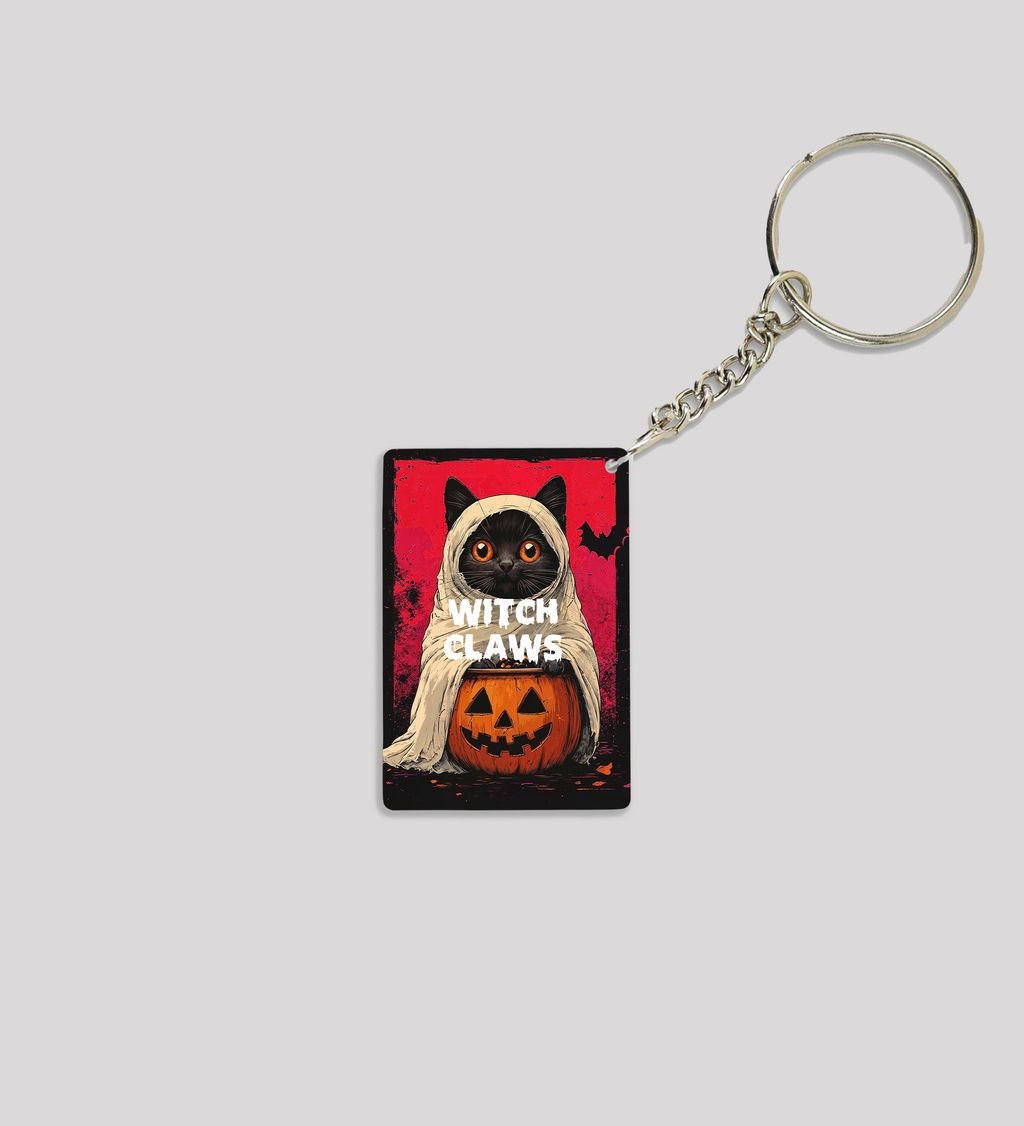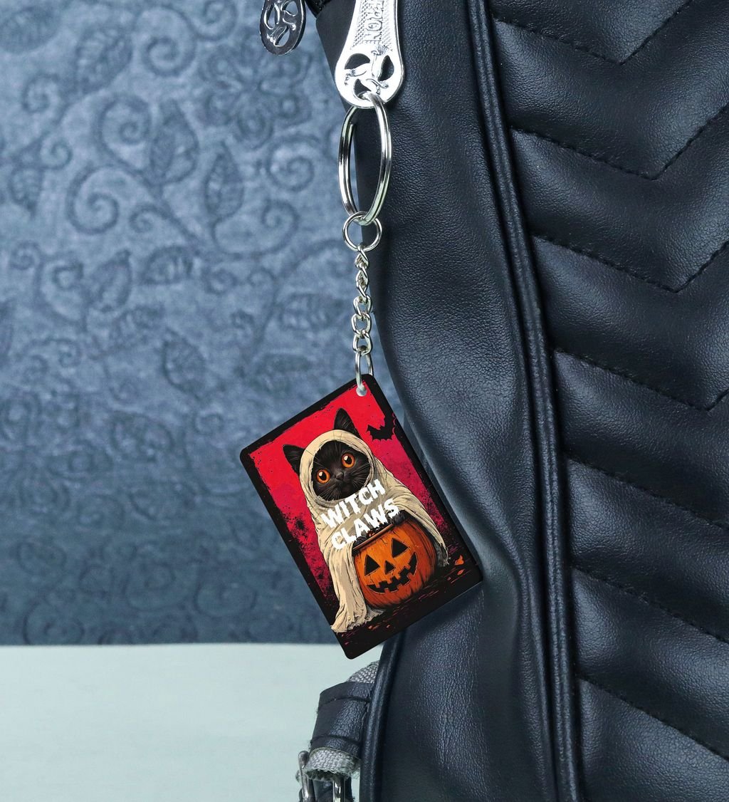 Cute Halloween Cat in Witch Costume Printed Keychain Pack of 2