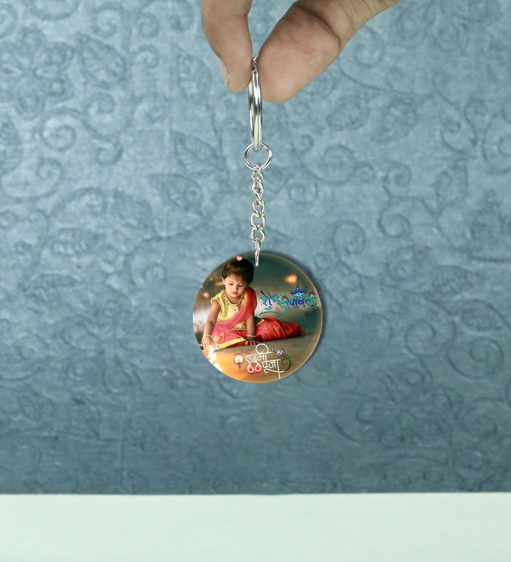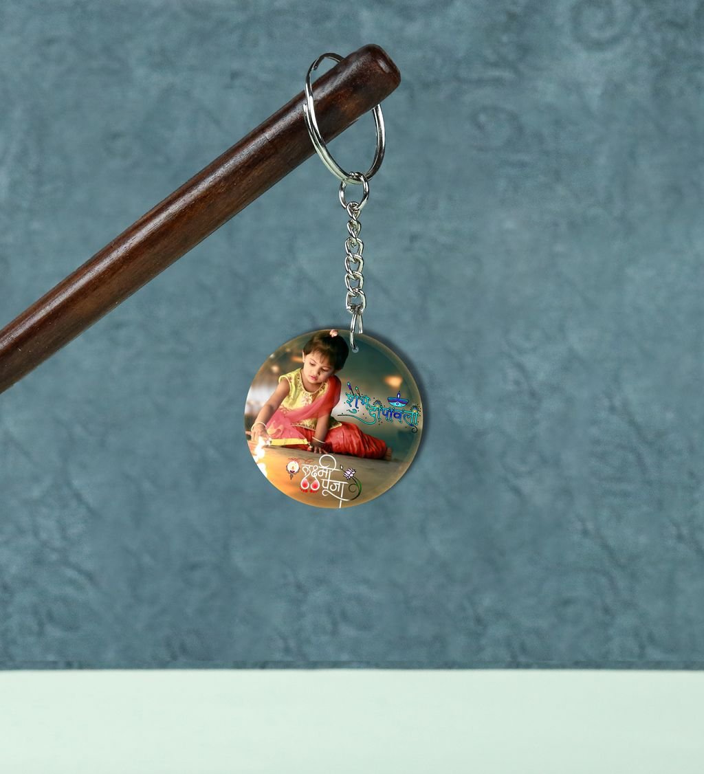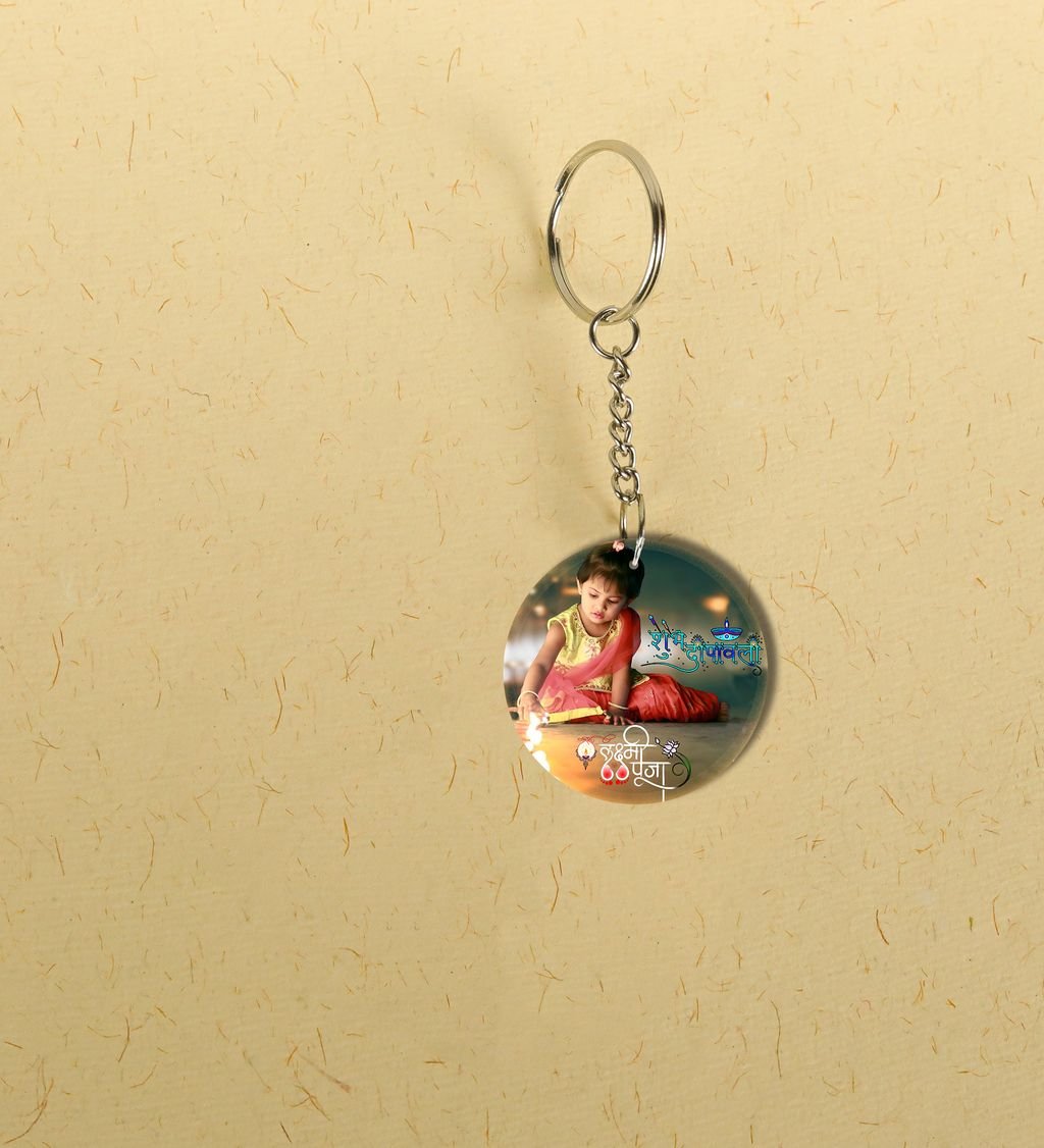 Decorative Diyas Shine Diwali Printed Round Keychain Pack of 2