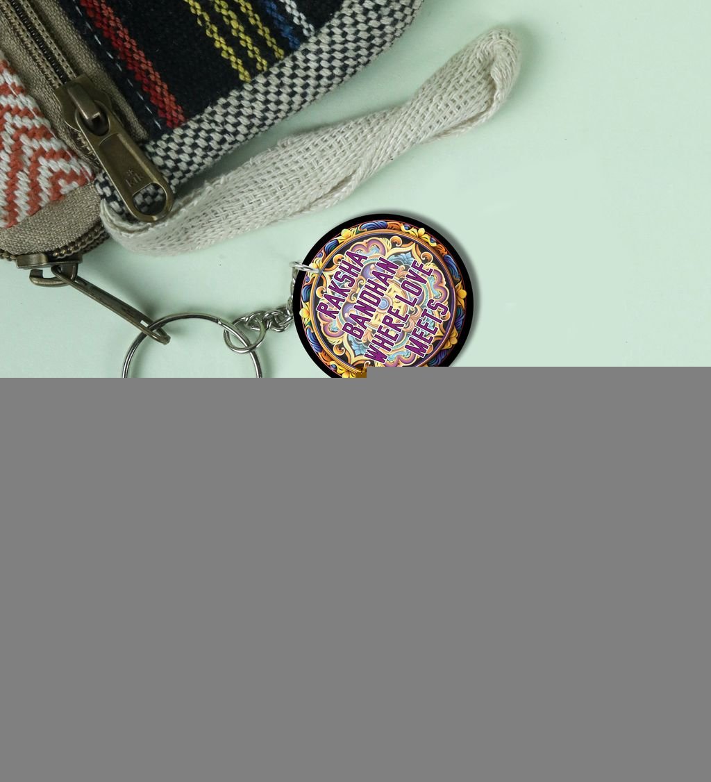 Celebrate the sacred bond of protection and tradition with our Rak?ha?sk?it Round Keychain. Inspired by ancient Indian motifs and symbols of divine guardianship, this keychain blends cultural elegance with daily utility. A perfect token to carry blessings wherever you go, it's more than just a keyholder