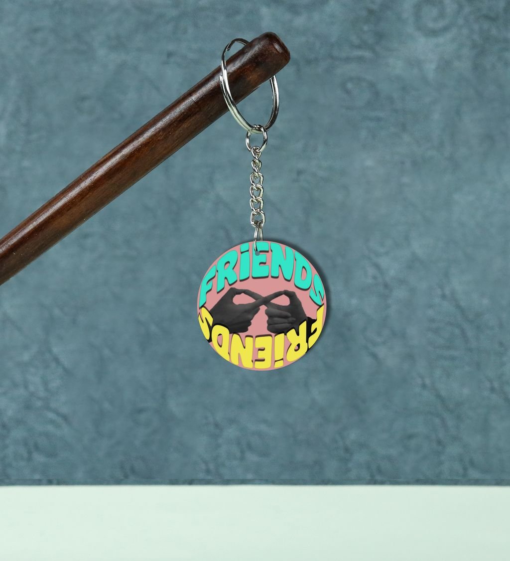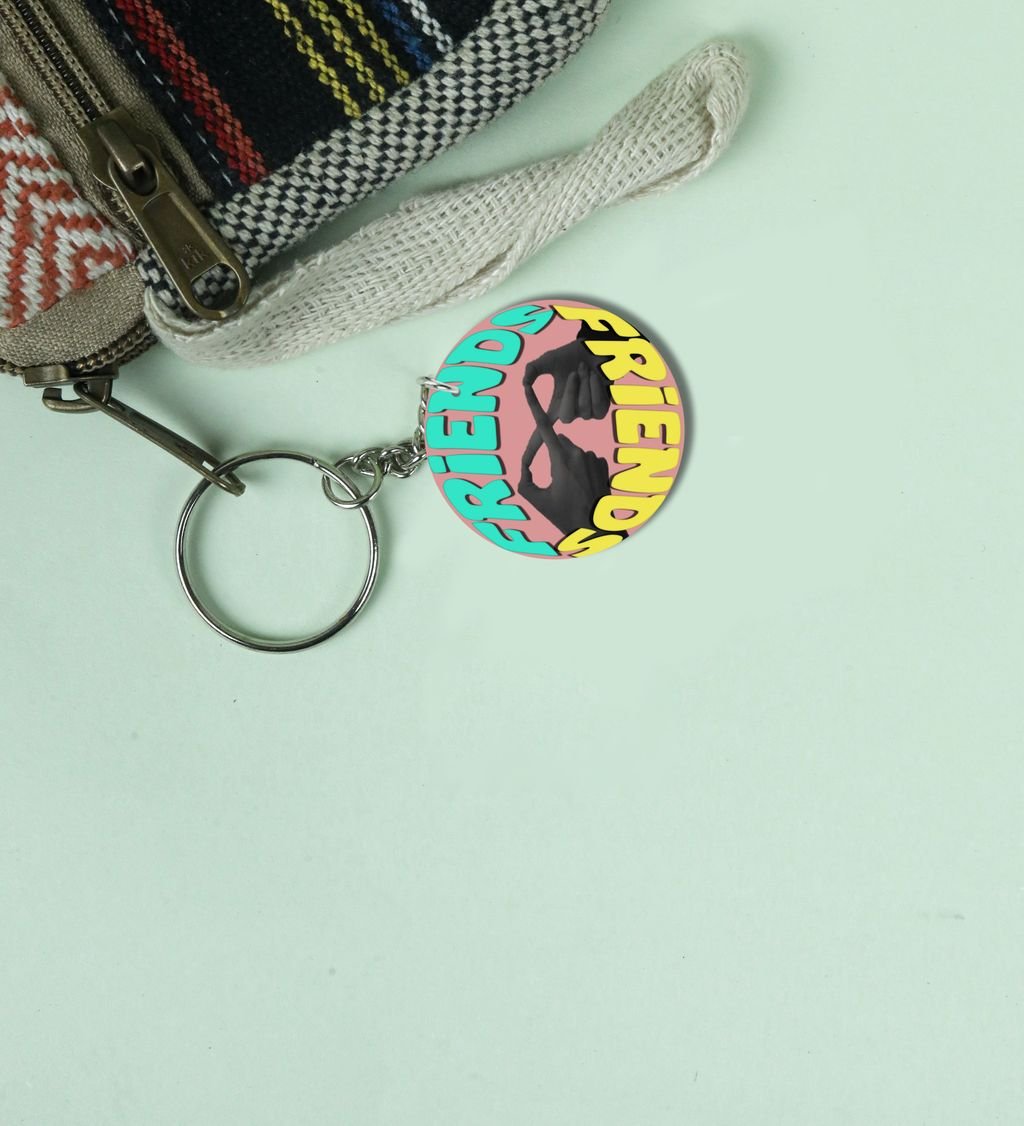 Friendship Vibes in Retro Color Style: Printed Round Keychain Pack of 2