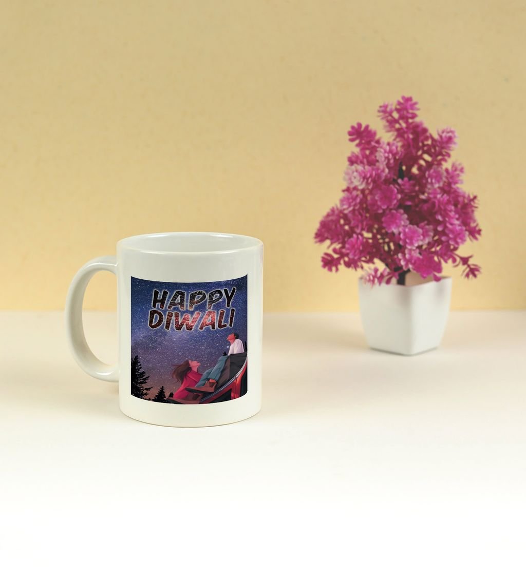 Celebrate the festival of lights with every sip! This beautifully designed Happy Diwali coffee mug adds a festive glow to your mornings and cozy evenings. Featuring vibrant diyas and elegant patterns, it's perfect for gifting or enjoying your favorite brew during the celebrations. Make your Diwali sparkle
