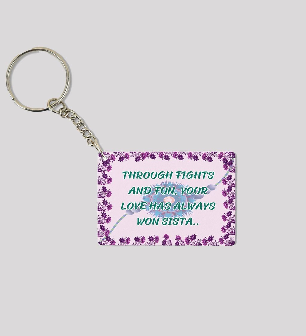 Heartwarming Sibling Love Quote With Rakhi Printed Keychain Pack of 2