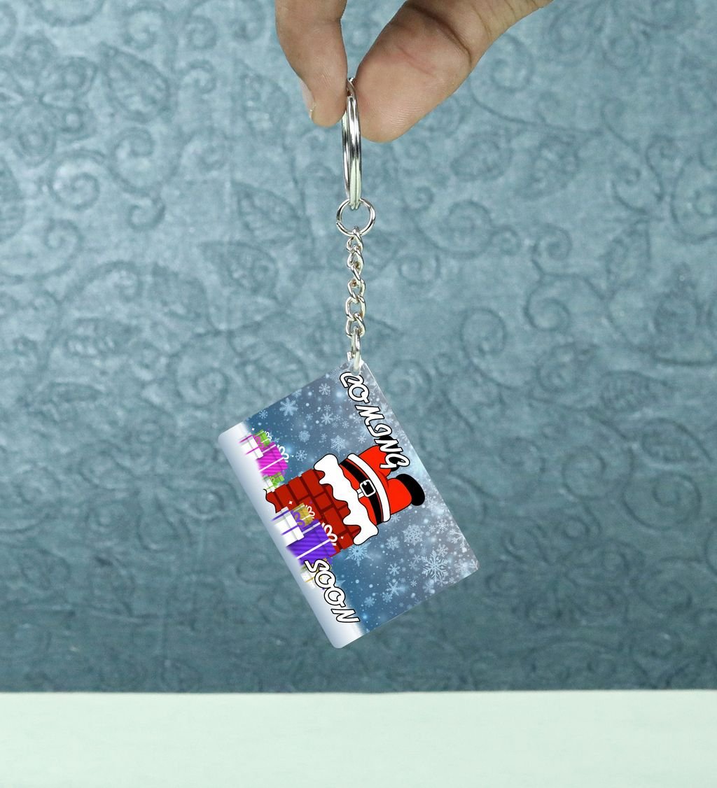 Holiday Fun Begins with Santa Coming Soon Printed Keychain Pack of 2