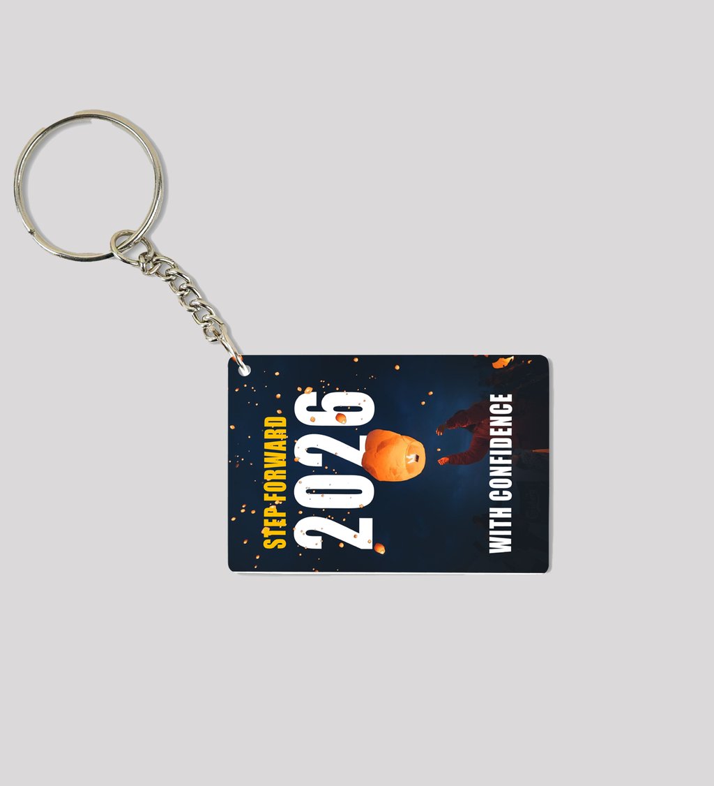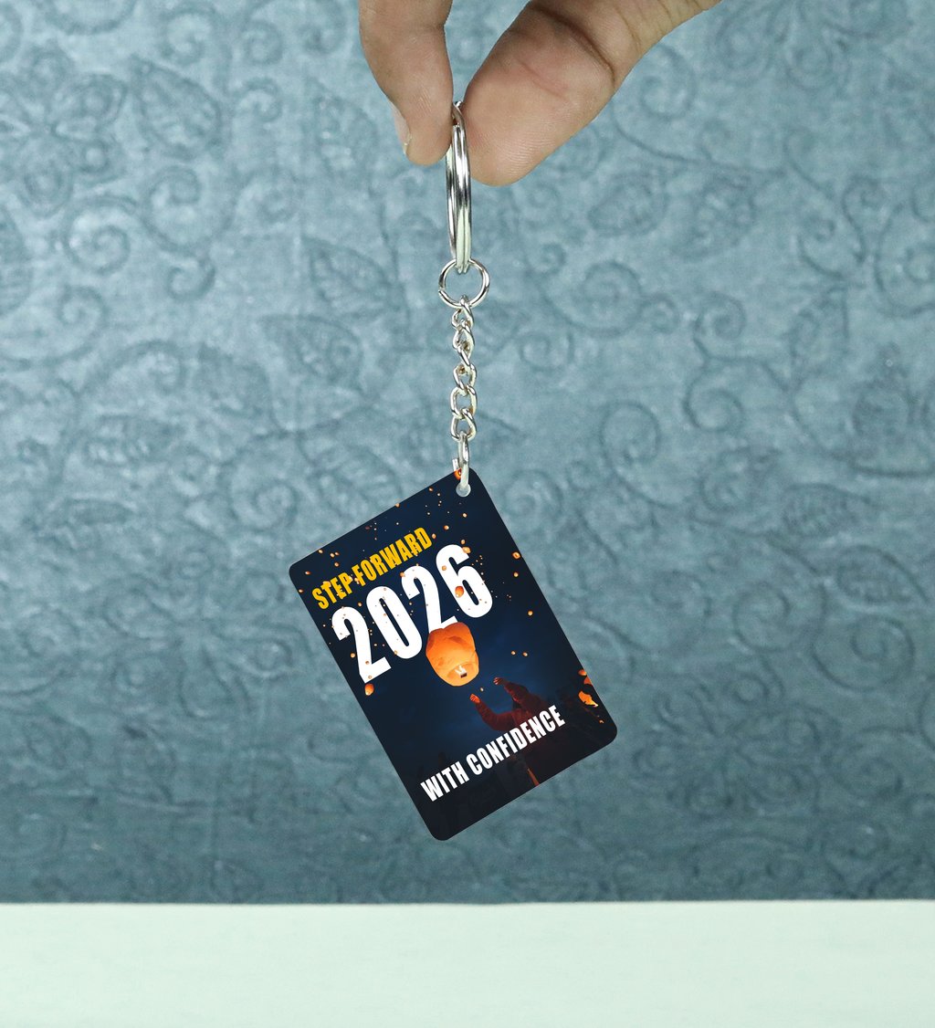 Illuminated Sky Lanterns Design Encouraging You to Step Forward into 2026 with Utmost Confidence Printed Keychain Pack of 2.