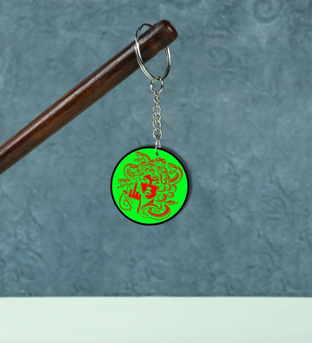 Intriguing Snake-Haired Mythical Figure in Bright Colors Printed Round Keychain Pack of 2