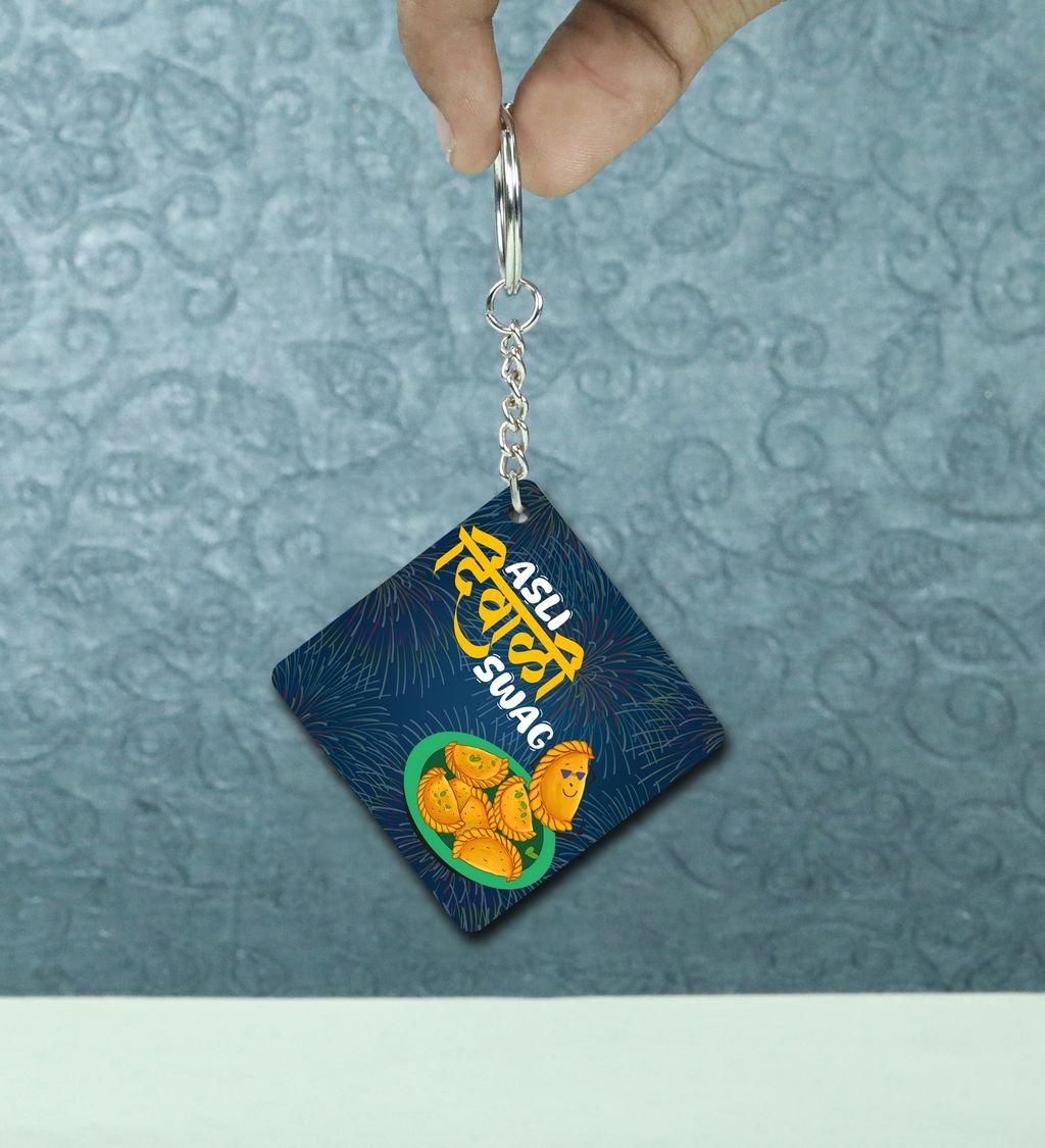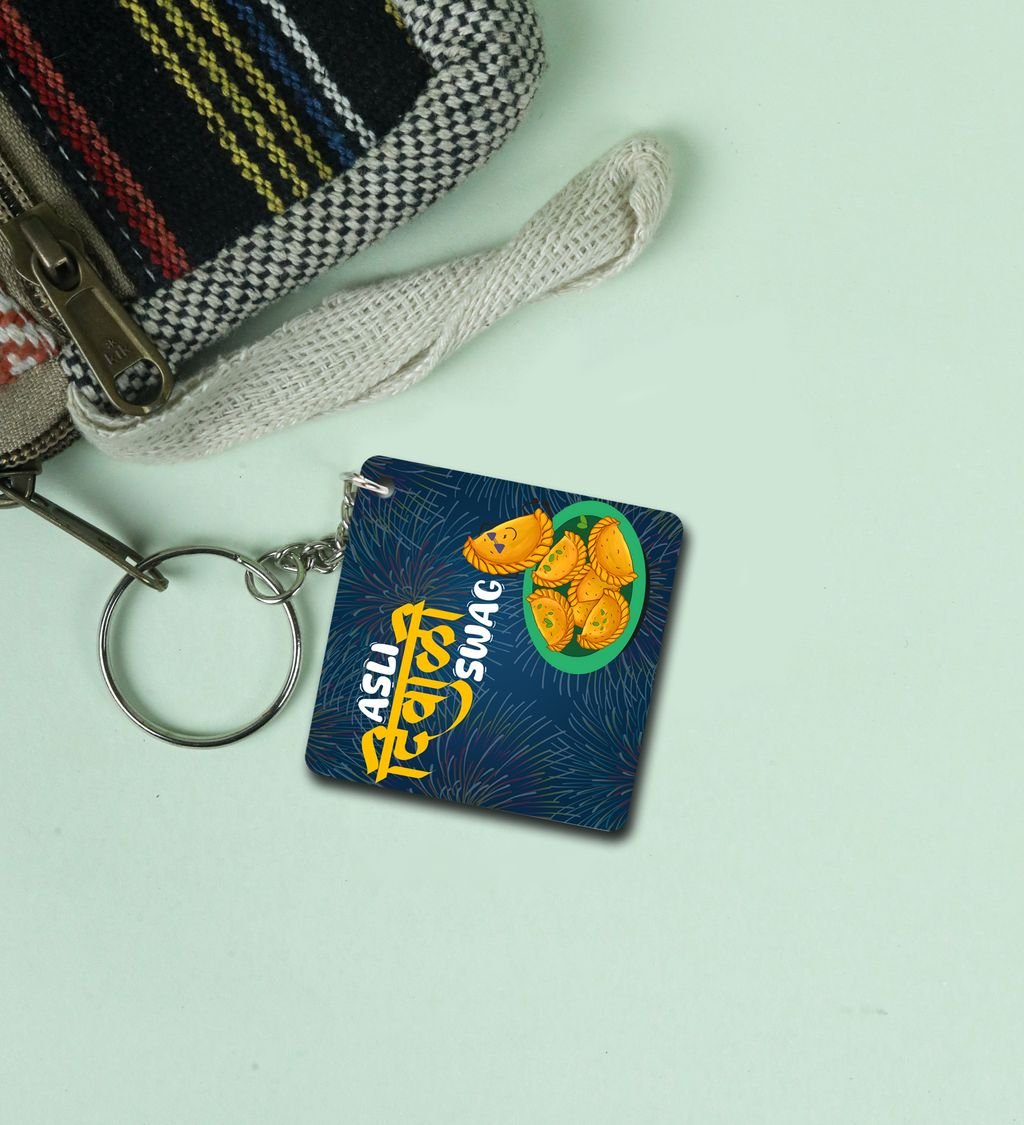 Celebrate this festive season with stylish Diwali Slogan Printed Square Keychains. Designed with vibrant prints and motivational festival slogans, these keychains are perfect for gifting or personal use. Lightweight, durable, and easy to carry, they add a festive charm to your everyday essentials. Whether it