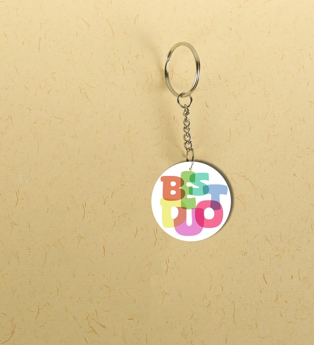 Multicolor Best Duo Graphic Look: Printed Round Keychain Pack of 2