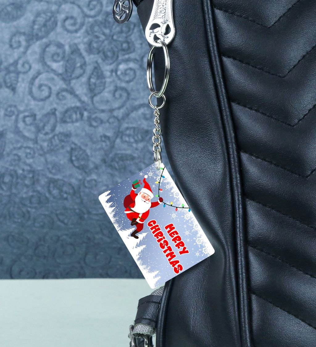 Snowy Nights and Santa Lights Merry Christmas Printed Keychain Pack of 2