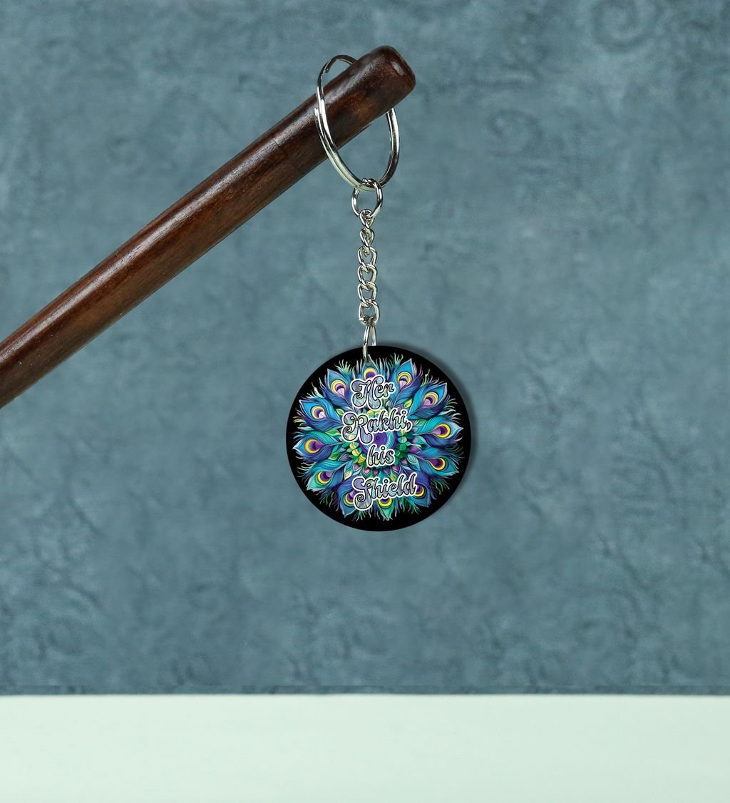 Celebrate the sacred bond of protection and tradition with our Rak?ha?sk?it Round Keychain. Inspired by ancient Indian motifs and symbols of divine guardianship, this keychain blends cultural elegance with daily utility. A perfect token to carry blessings wherever you go, it's more than just a keyholder