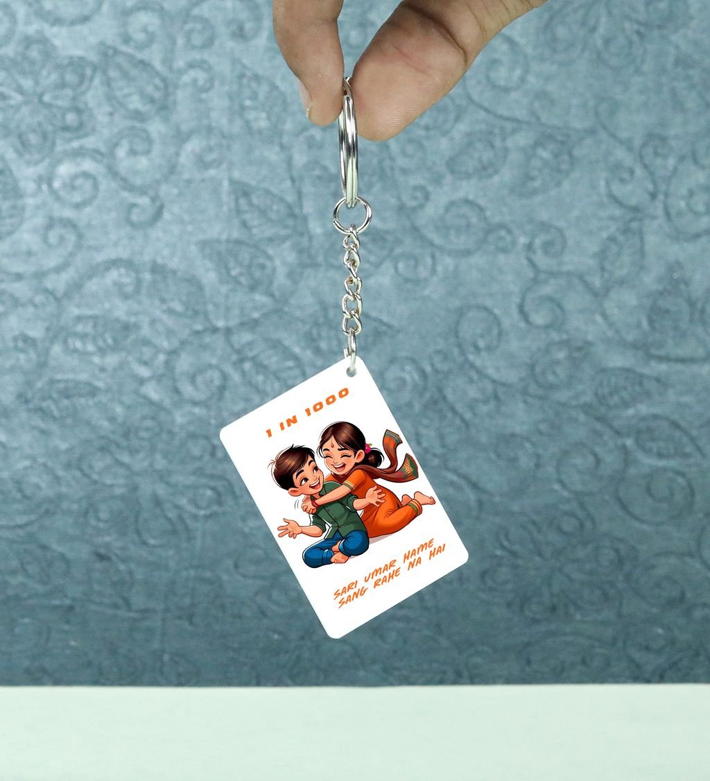Celebrate the pure bond of Raksha Bandhan with our Bandhan of Blessings printed keychain. Designed to capture the love, care, and protection shared between siblings, this keychain makes a meaningful keepsake and a thoughtful gift. Lightweight, durable, and stylish, it