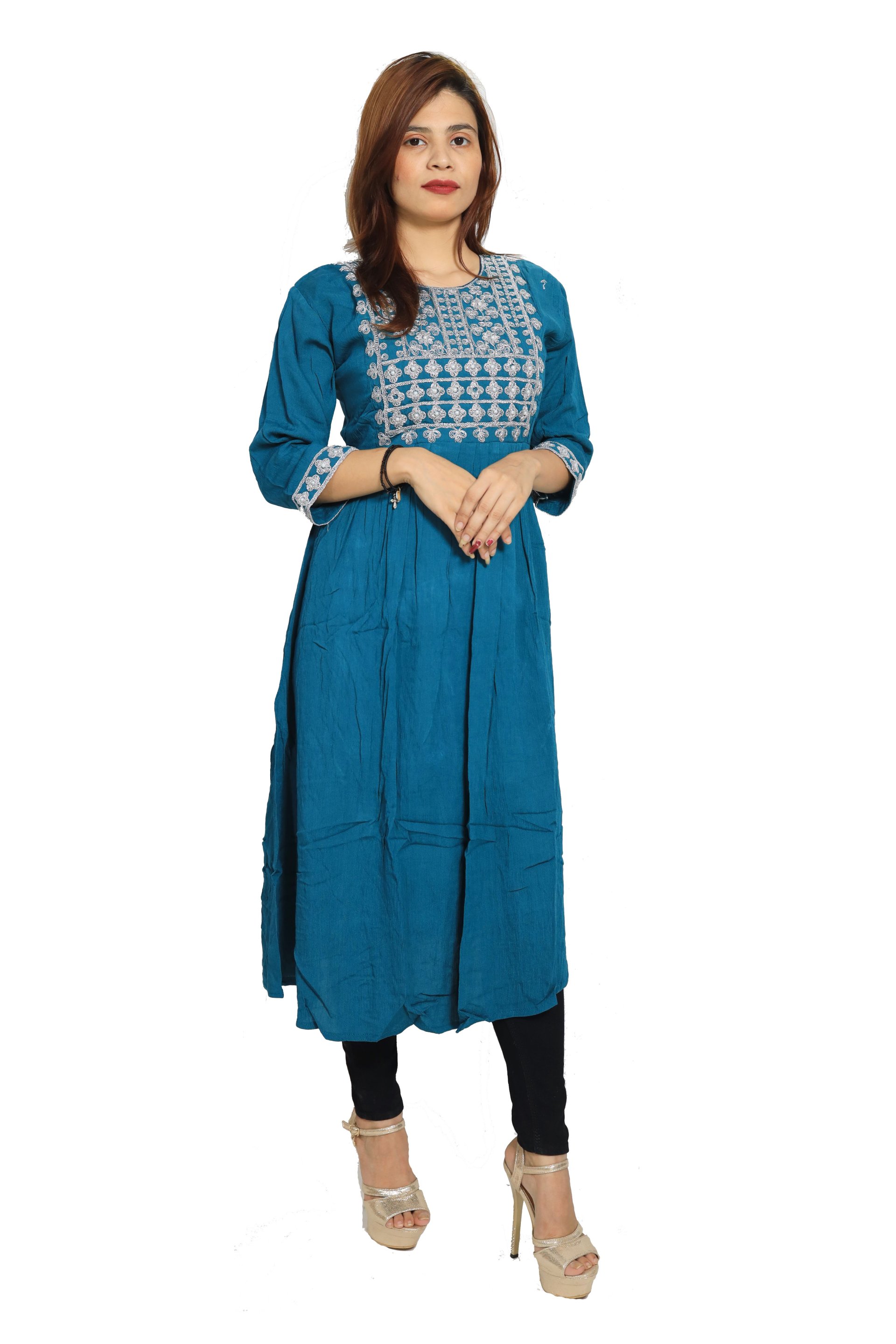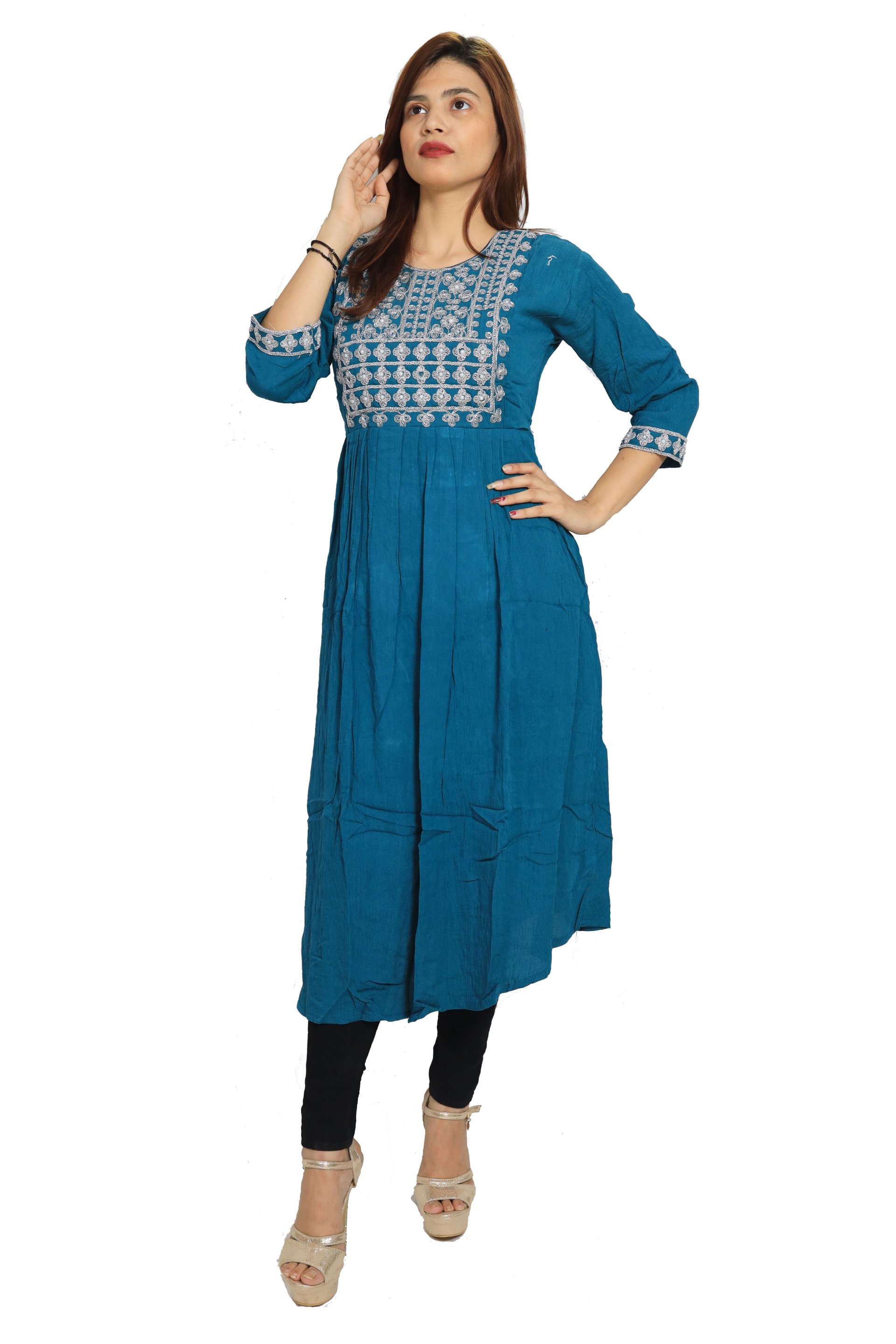 Women loves to wear kurtis of any age group. The fashion is not only limited upto married women but also to the teenagers. For any traditional day, poojas or any religious program, kurtis are mostly used to wear by ladies which gives positive, ritualistic and ceremonial vibes. The recognization of kurtis is still going on in 21st century. So, We have brought you a full collection of embroidery kurtis which is made of Rayon and designed for you plesant and comfy.