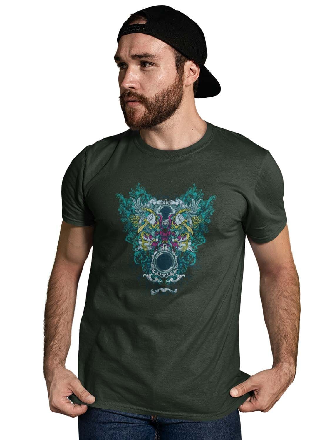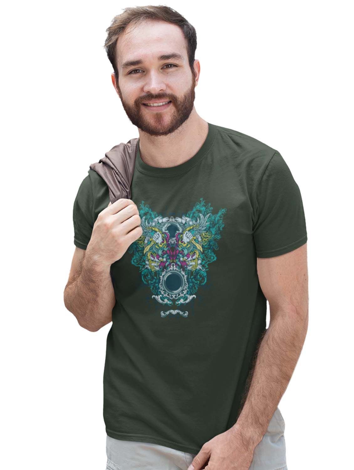 Outlams - Round Neck Tshirt Green Round Neck Cotton Half Sleeved T-Shirt with Printed Graphics
