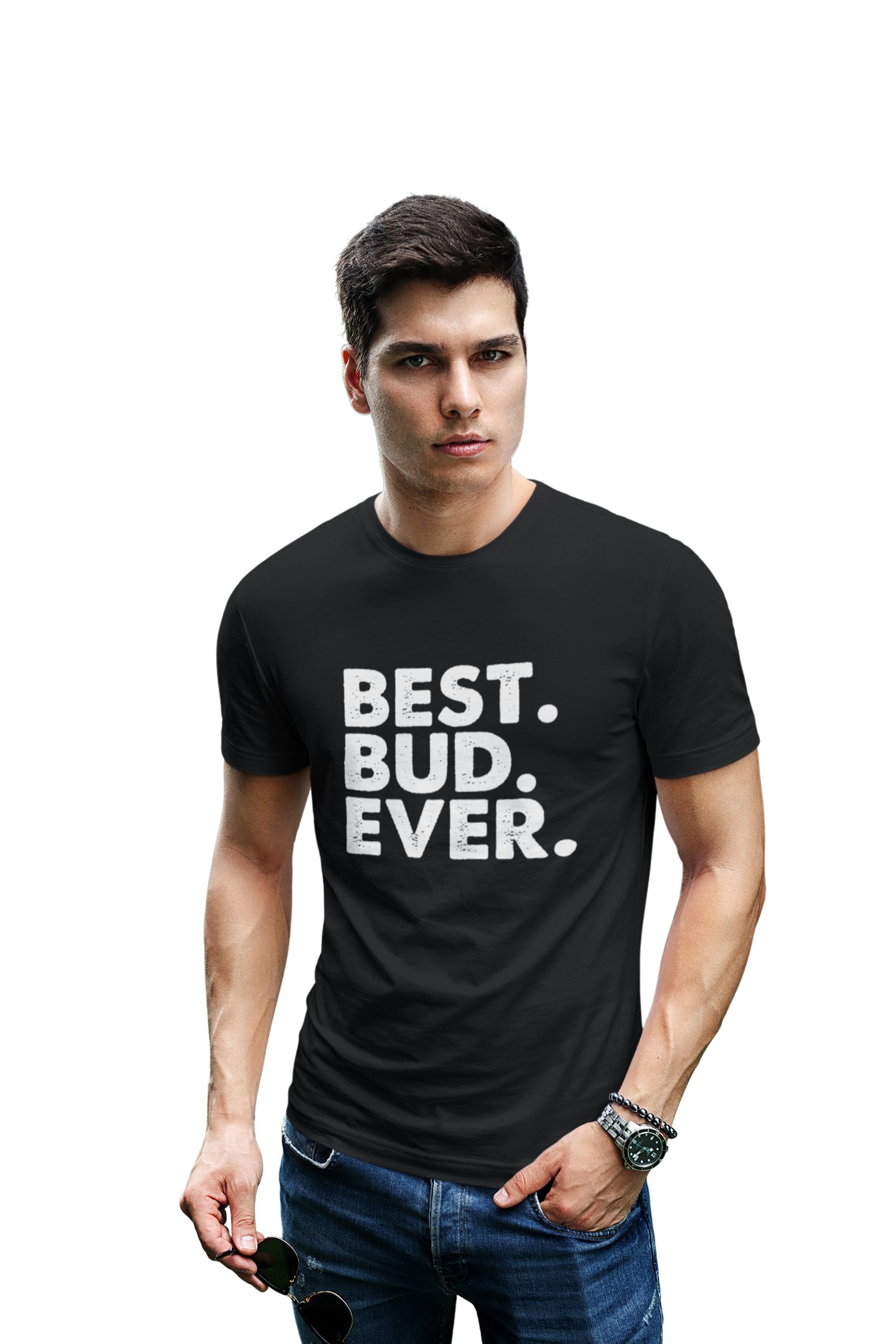 Best bud ever -printed family themed cotton blended half-sleeve t-shirts made for men (black)