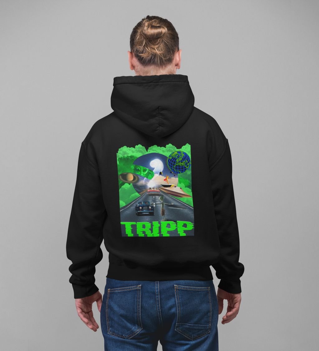Cosmic Vibes Tripp Black Cotton Printed Hoodies For Men