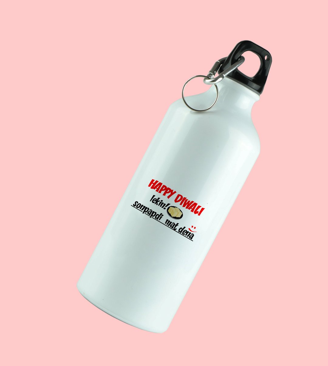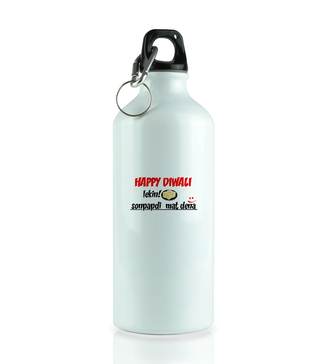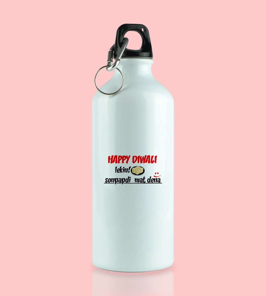 Add a delightful blend of humor and tradition to your Diwali with our "Diwali Laughter" sipper bottle. The design features the heartwarming greeting "Happy Diwali," followed by the cheeky twist, "Lekin Sonpapdi mat dena :)." Sip your coffee with a side of laughter and embrace the lighthearted spirit of the festival.