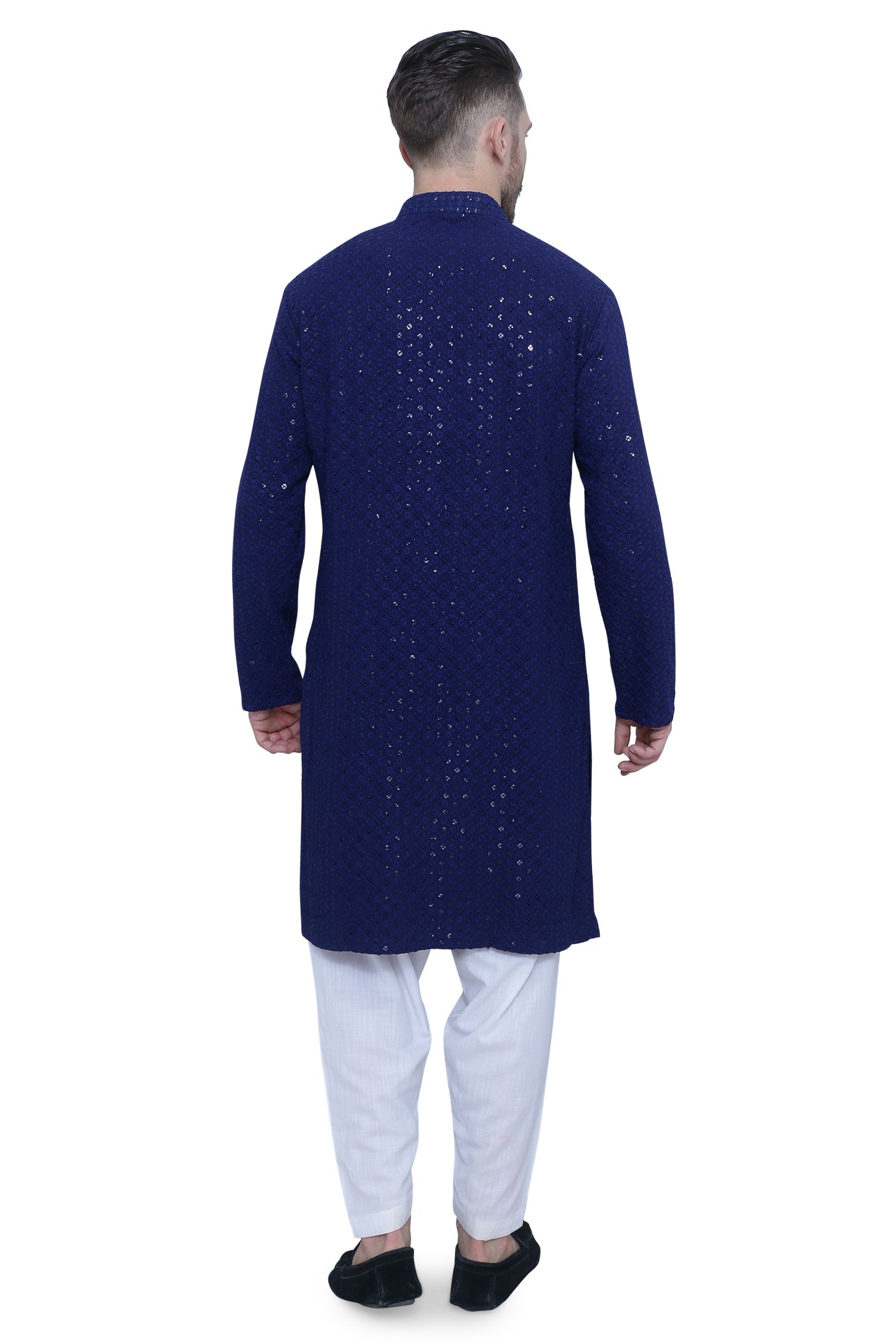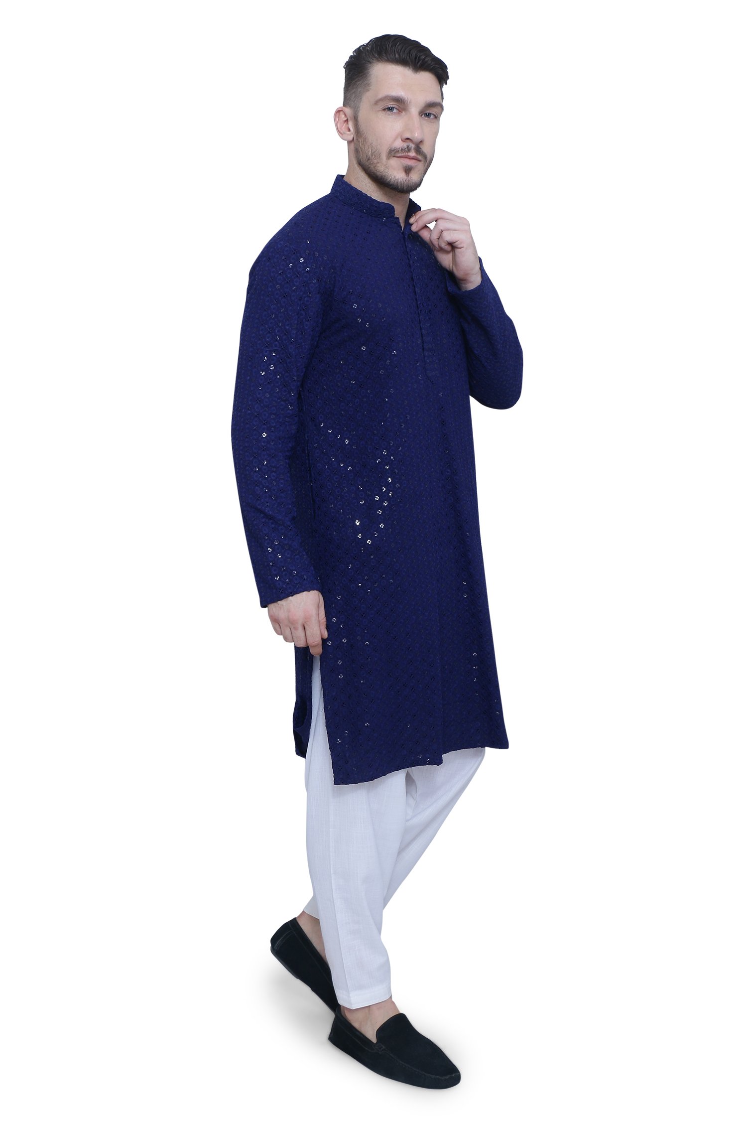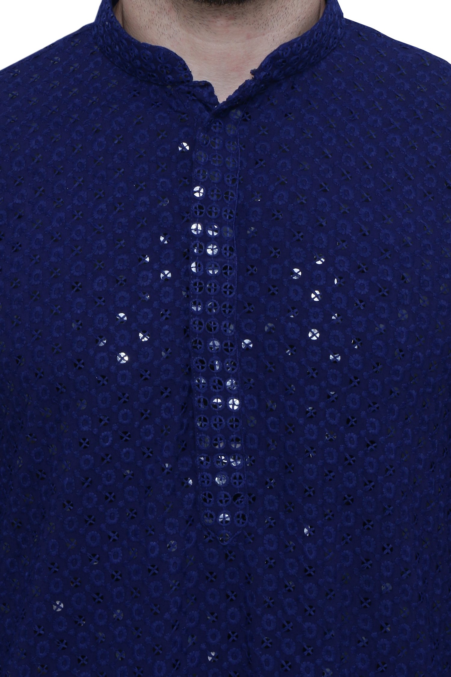 Elegant Royal Blue Chikankari Men's Kurta Set in High-Quality Fabric