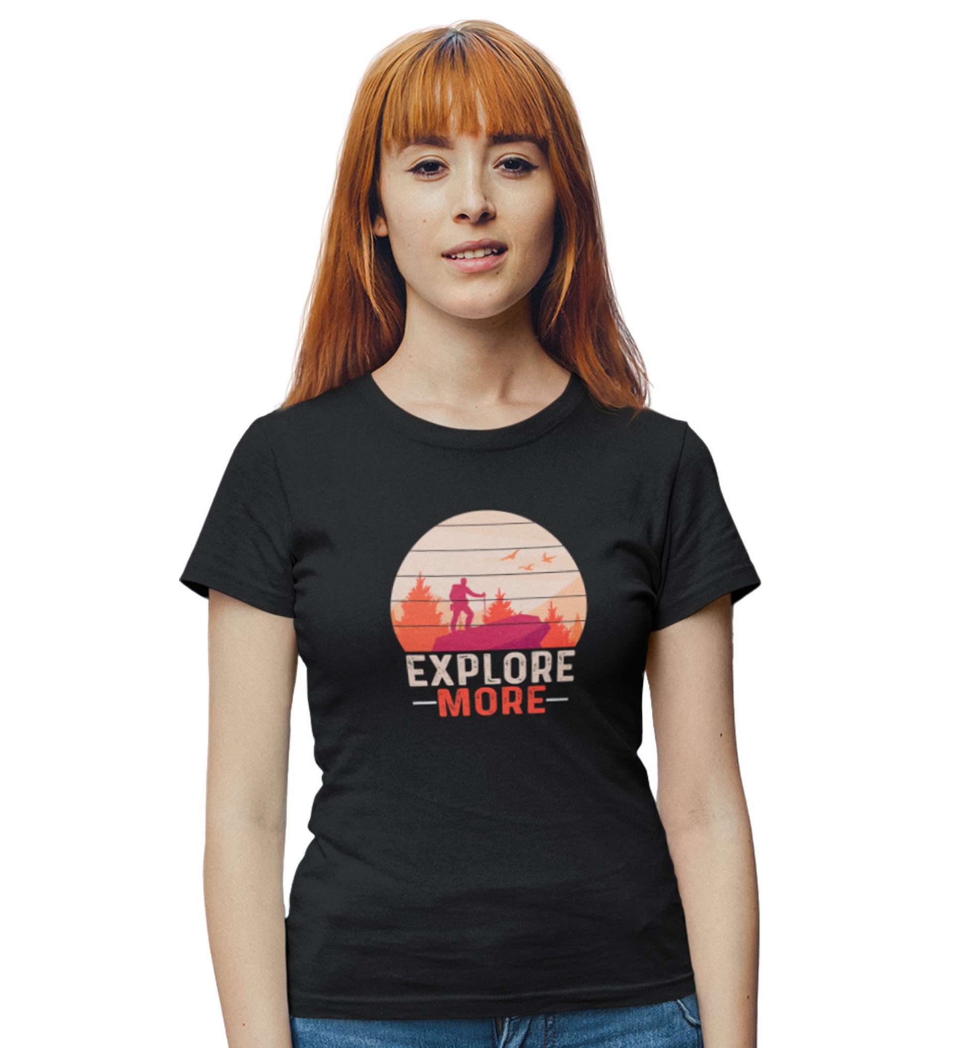 HopOfferExplore Black Round Neck Cotton Half Sleeved Women's T-Shirt with Printed Graphics