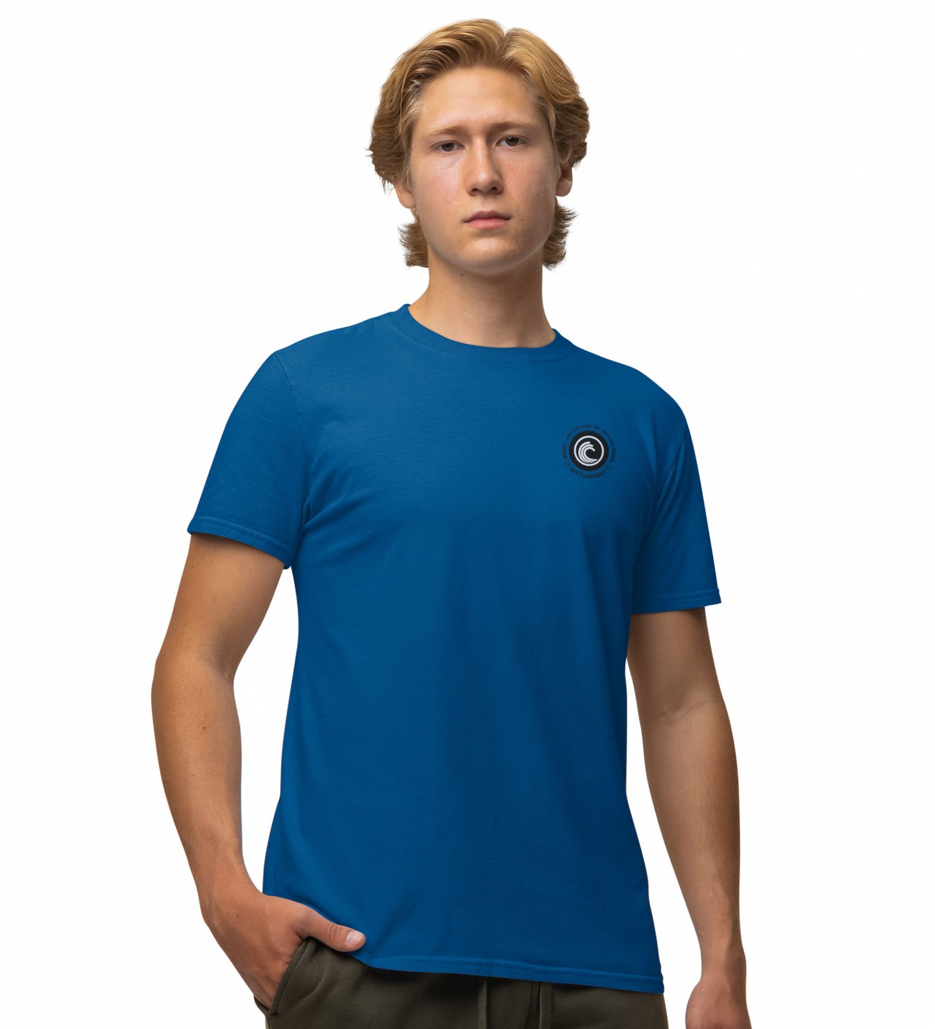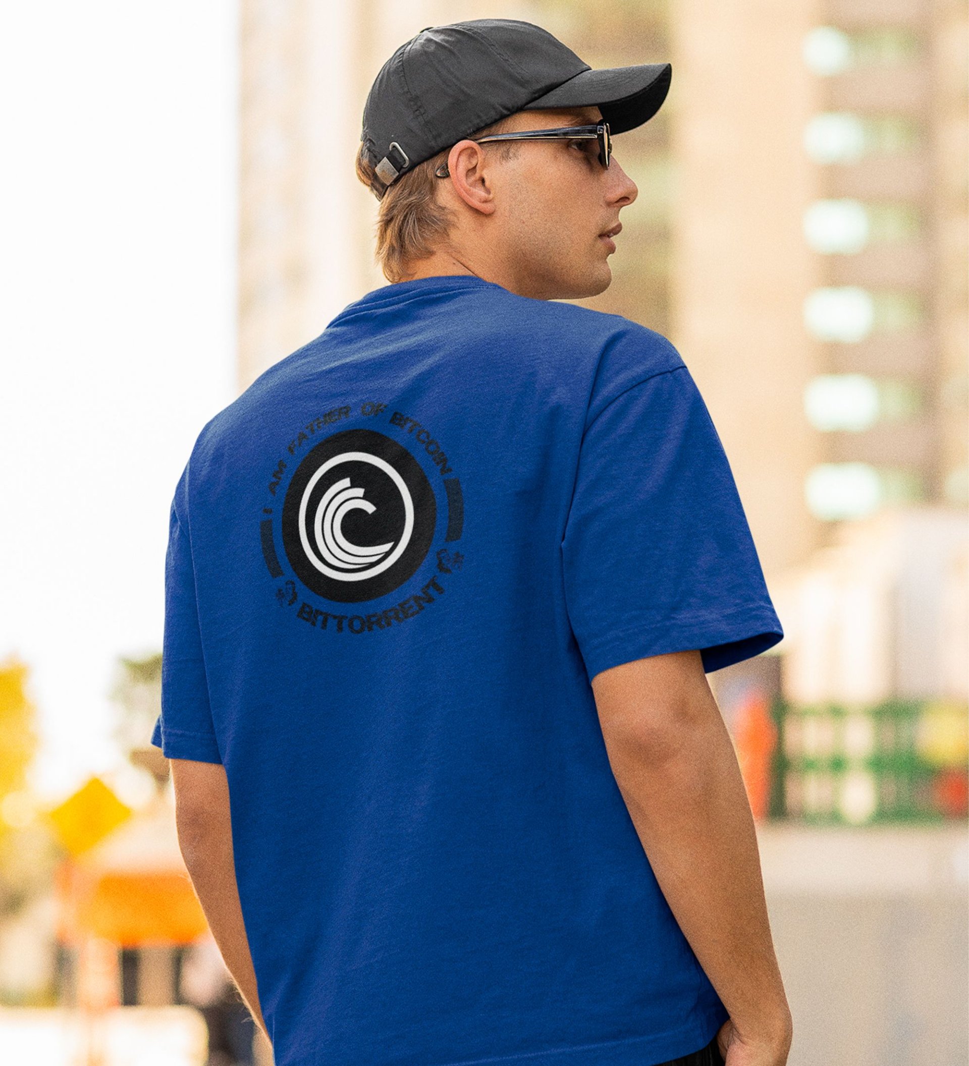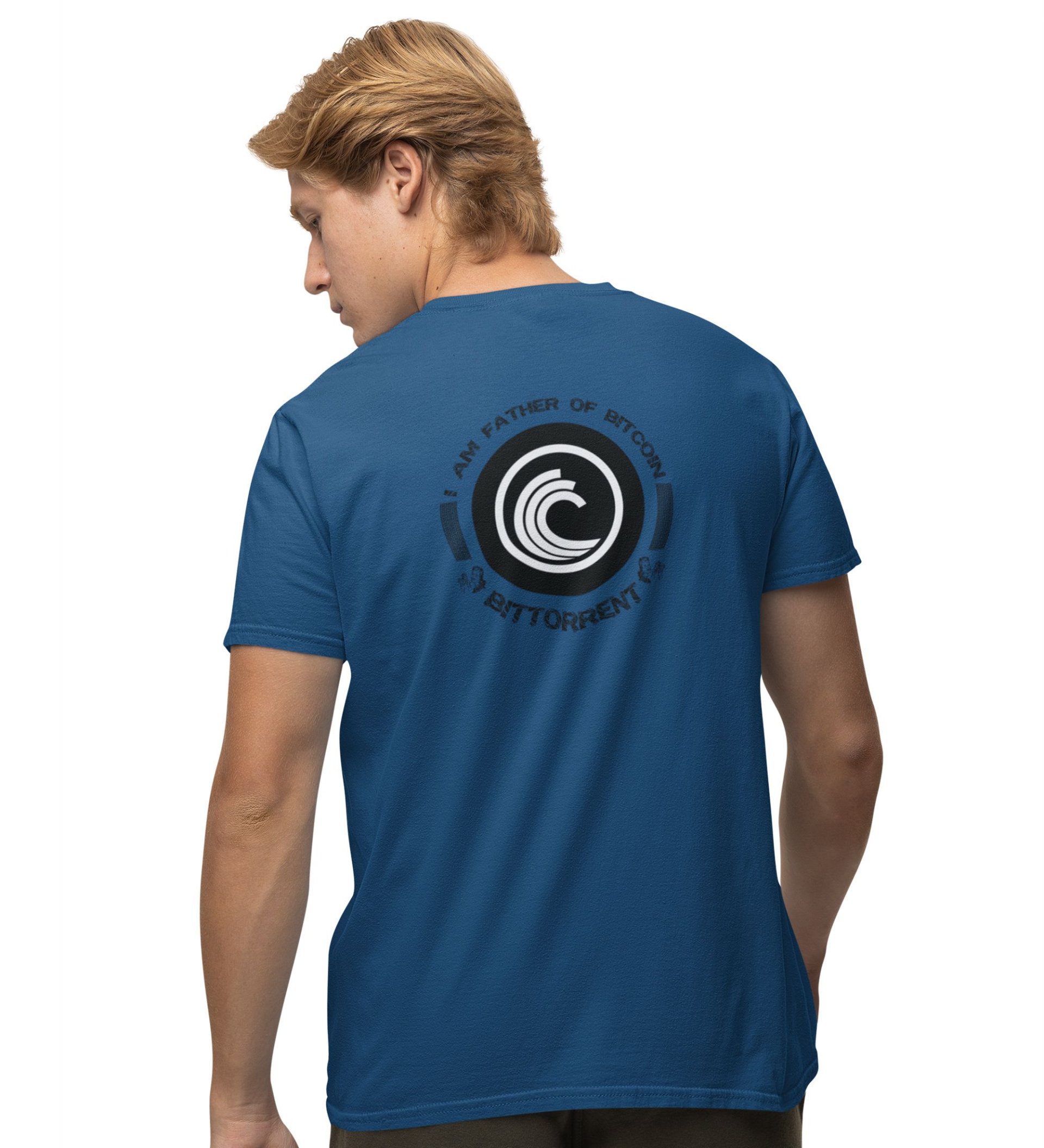 Father Of Bitcoin Wings Blue Round Neck Cotton Half Sleeved Men's T Shirt with Printed Graphics