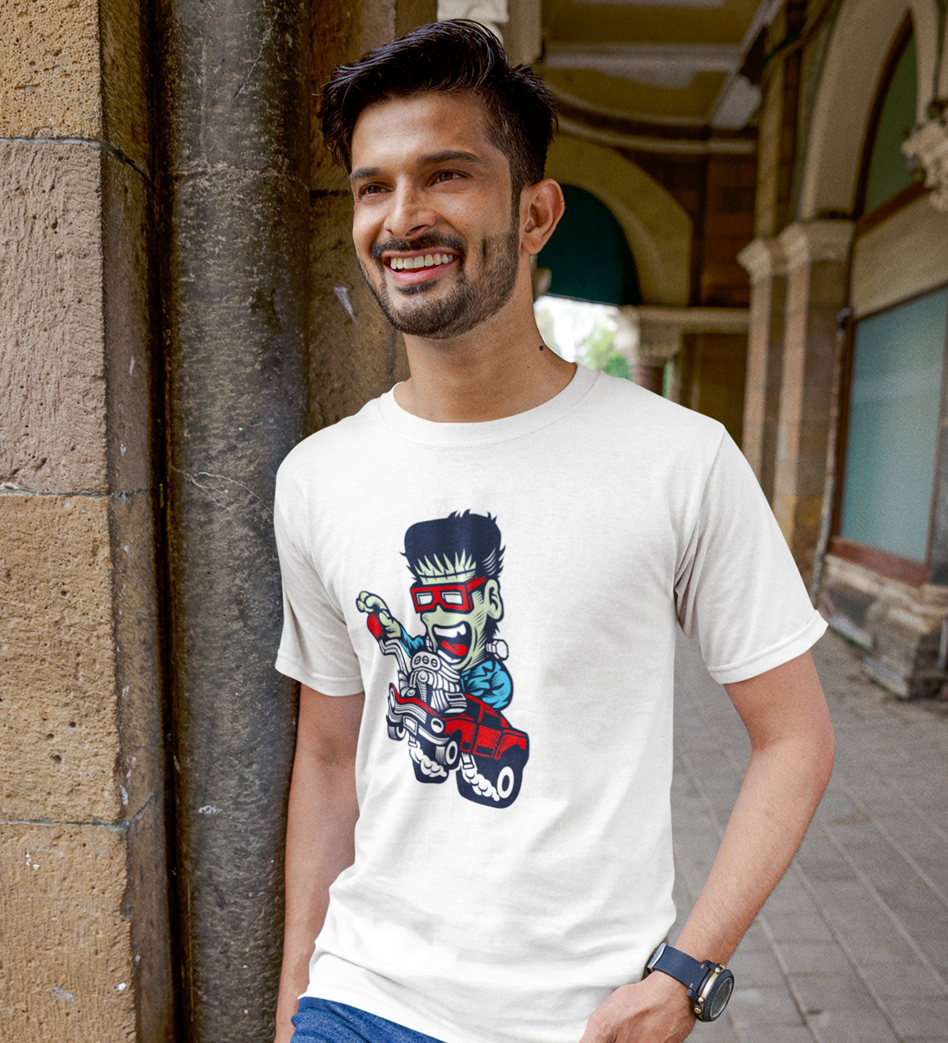 Zombie White Round Neck Cotton Half Sleeved Men's T-Shirt with Printed Graphics