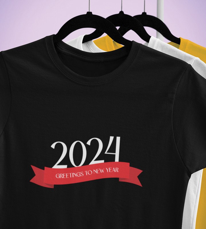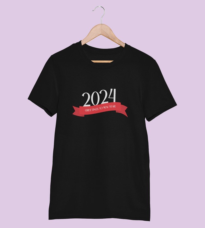 Greetings For New YearBlack New Year Printed T-shirt For Mens