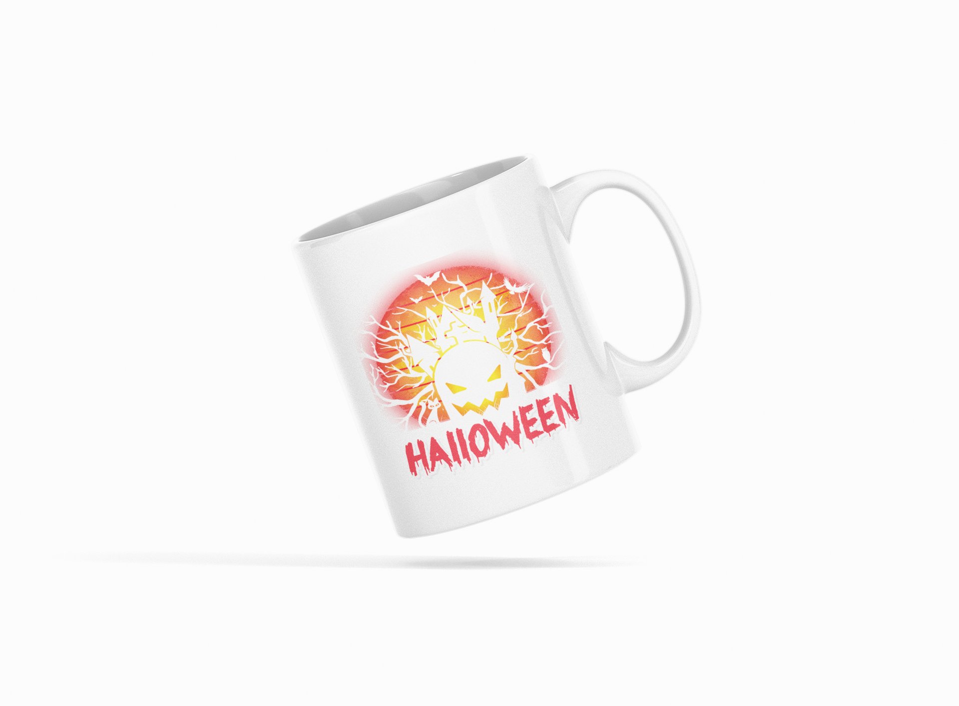 Halloween Red Text-White Ghost -Halloween Themed Printed Coffee Mugs