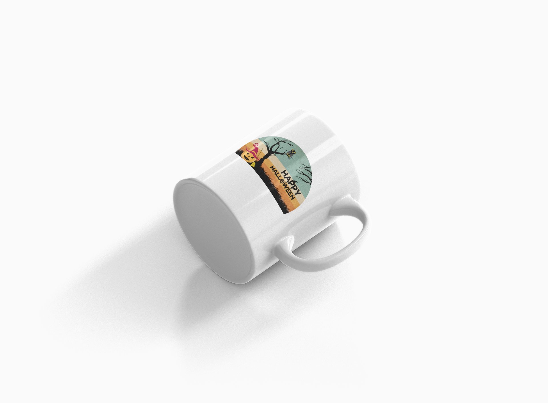 Happy Halloween Black text -Pumpkin And Trees -Halloween Themed Printed Coffee Mugs