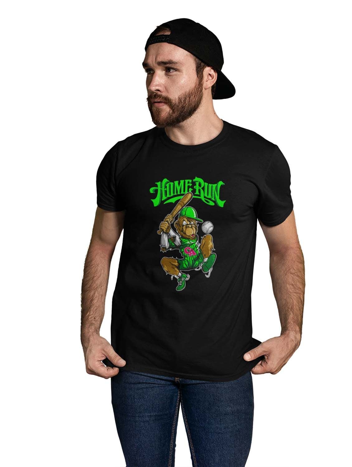 Baseball Monkey Black Round Neck Cotton Half Sleeved T-Shirt with Printed Graphics