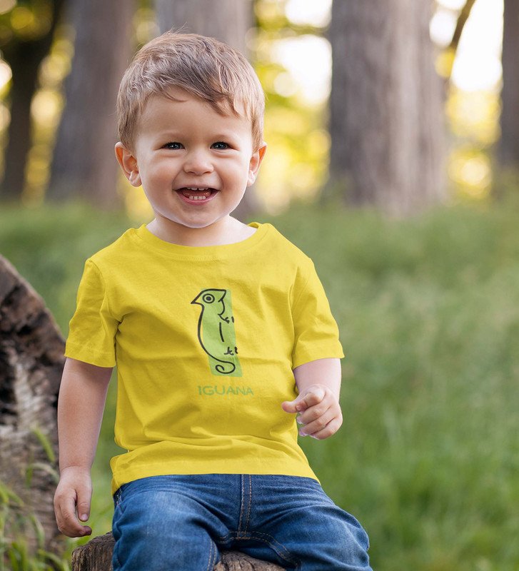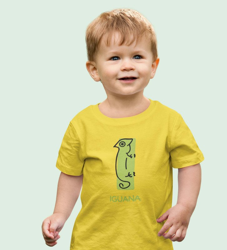 Intelligent Iguana, Boys Printed Crew Neck tshirt (yellow)