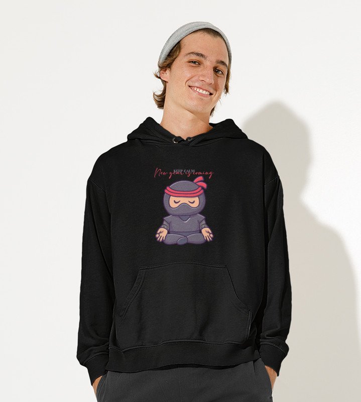 Keep Calm, Black New Year Printed Hoodies For Mens