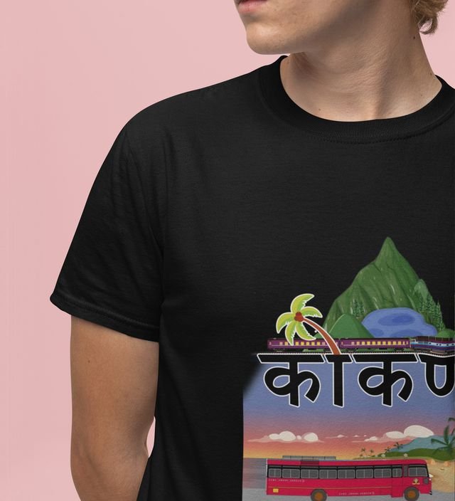 Lal Pari Lights & Railway Tracks: Kokan's Soulful Journey Graphic Printed Black T-Shirt for Men