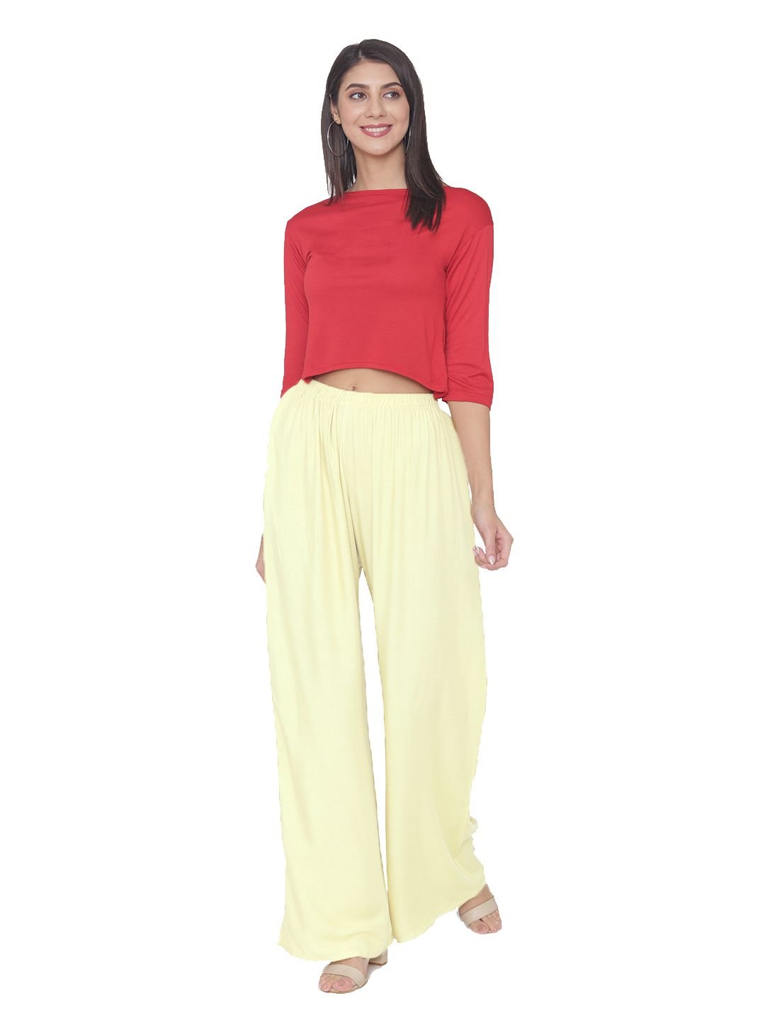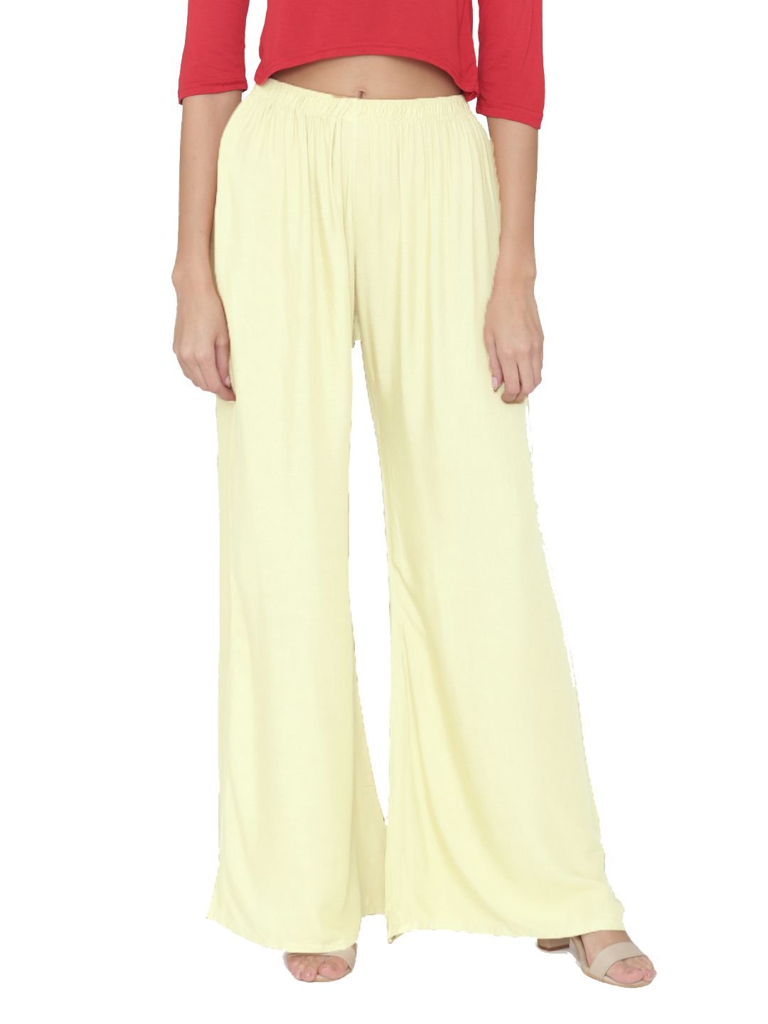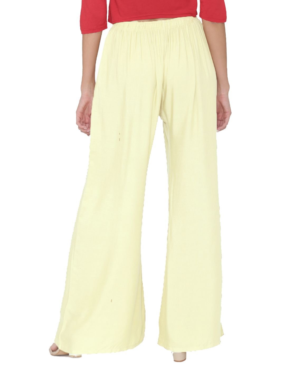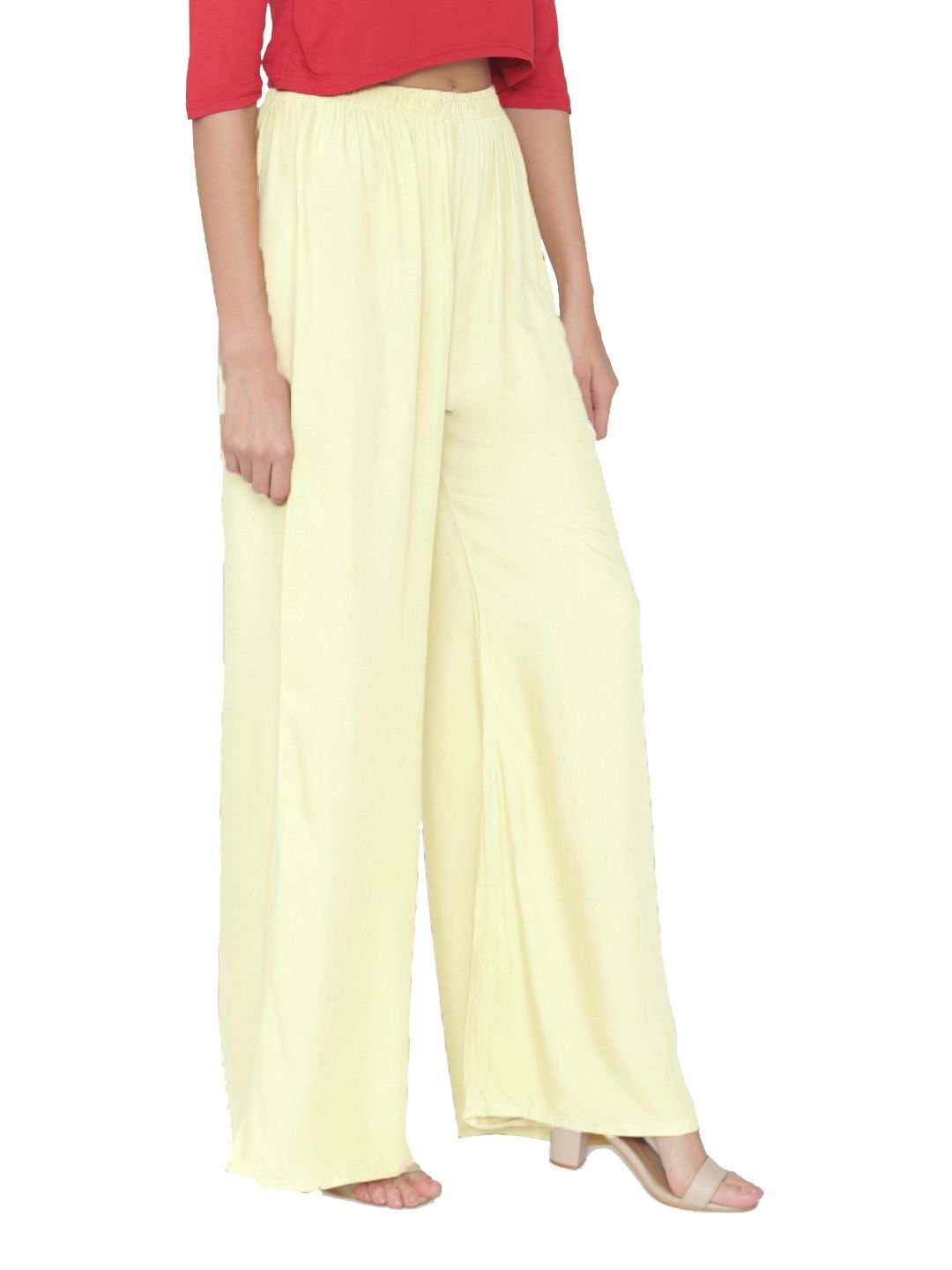 N-Gal Rayon Women's Wide Leg Elastic Waist Band Breathable Plain Palazzo Pant_Cream