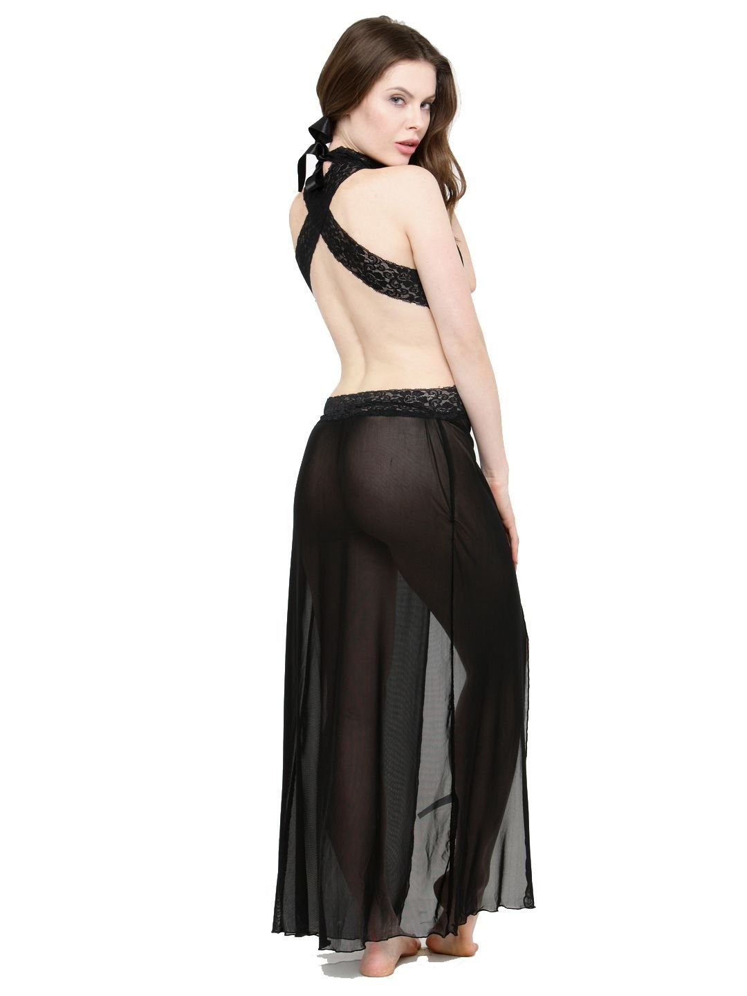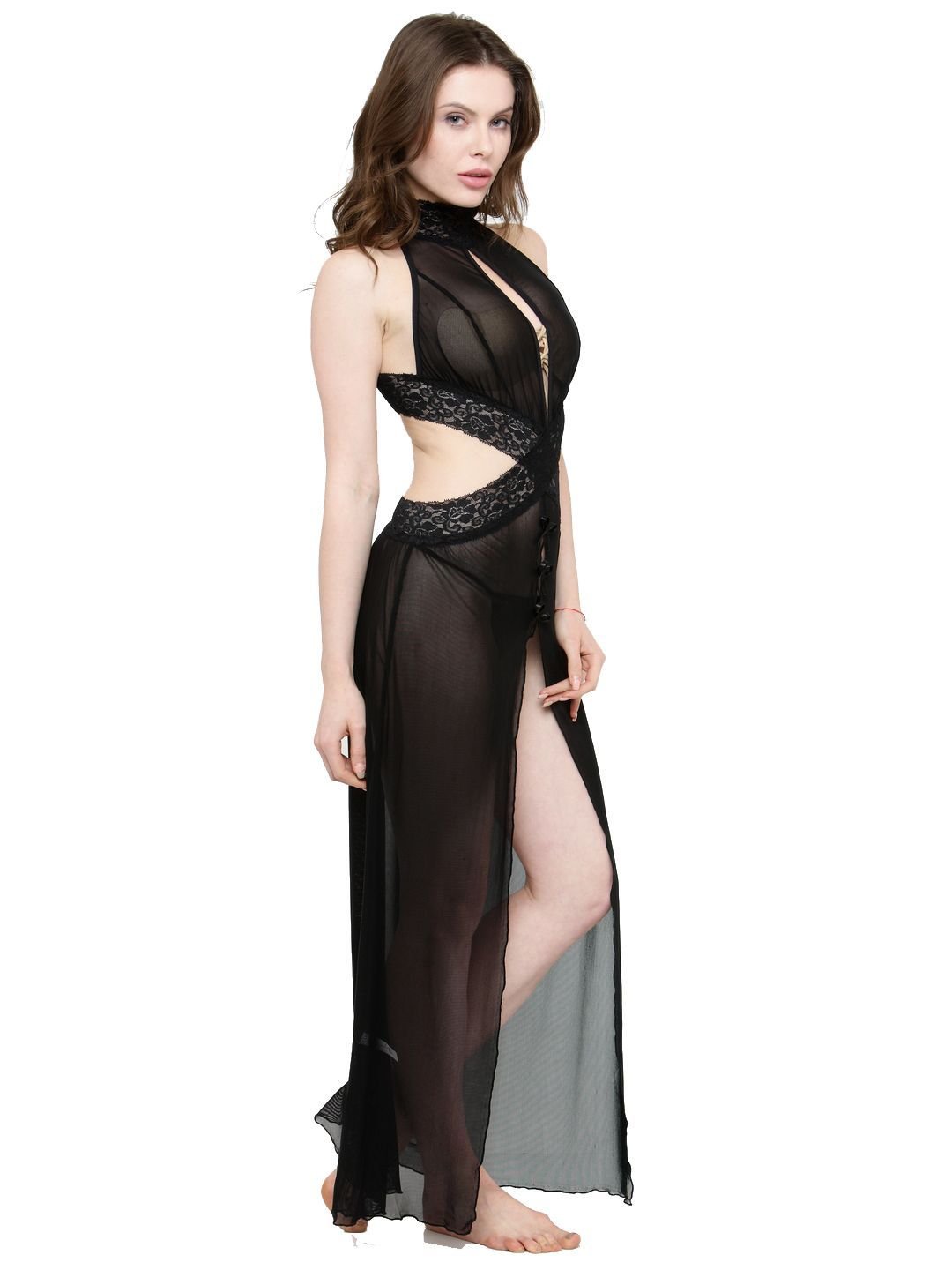 For a well-planned night, this gown is very lovely to make your intimate lover cheer up for your alluring silhouette. this mesh gown with lace detail waistline enhancing you a curve, scalloped lace V-neck on both front and back, flirty split to the thigh and thong matched. Mesh Nightgown Highly Comfortable Includes: Nightgown, G-String