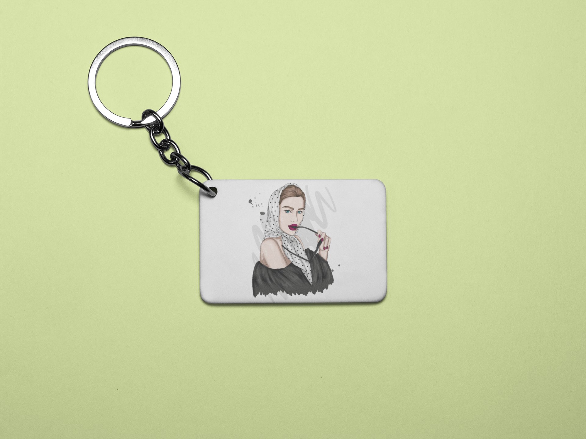 Off-shoulder black dress - Printed acrylic animated Keychain(Pack Of 2)