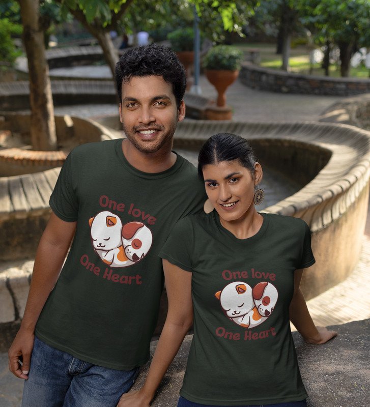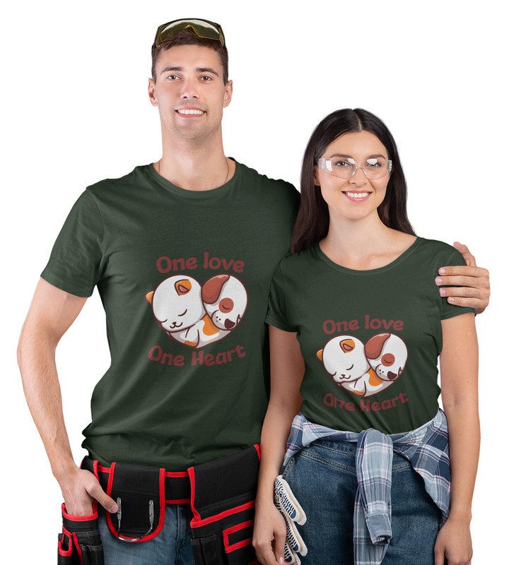 One Love One Heart Printed Couple (green) T-shirts