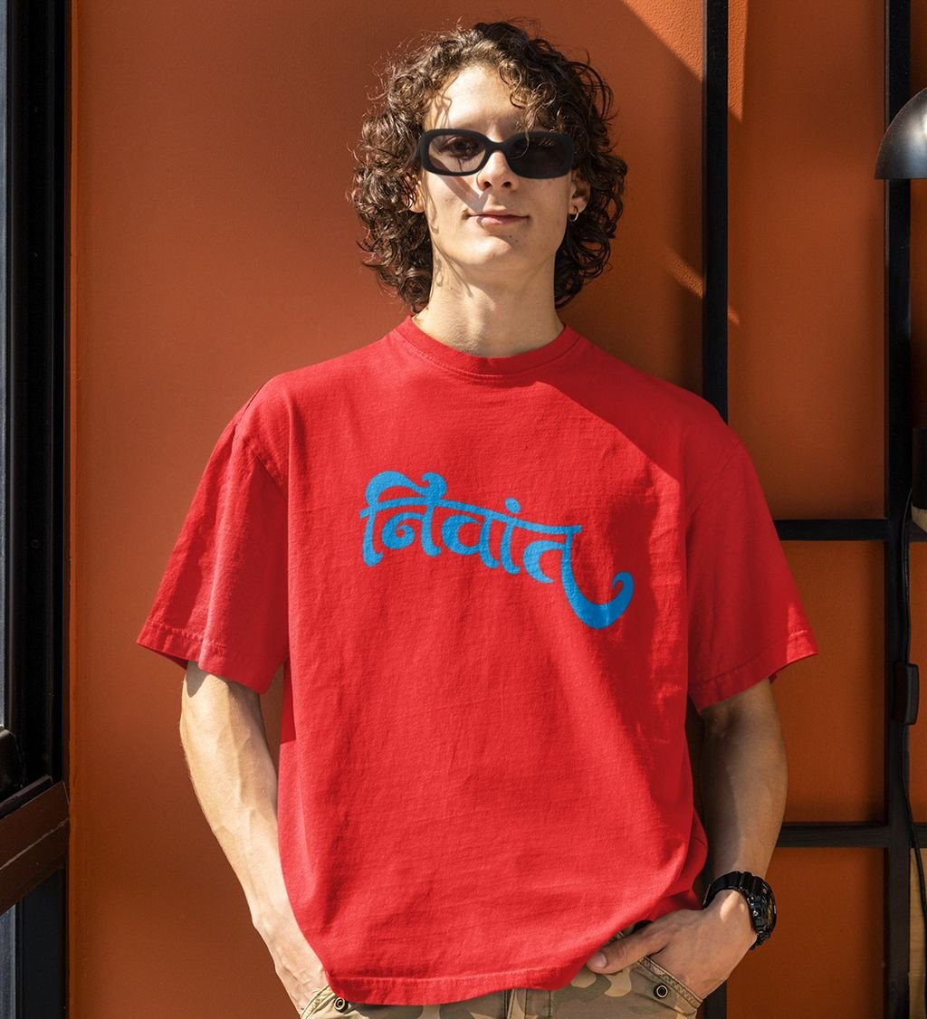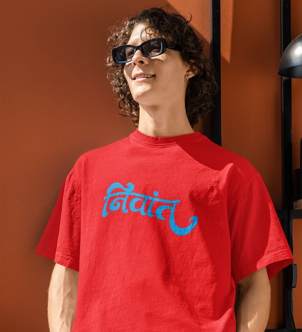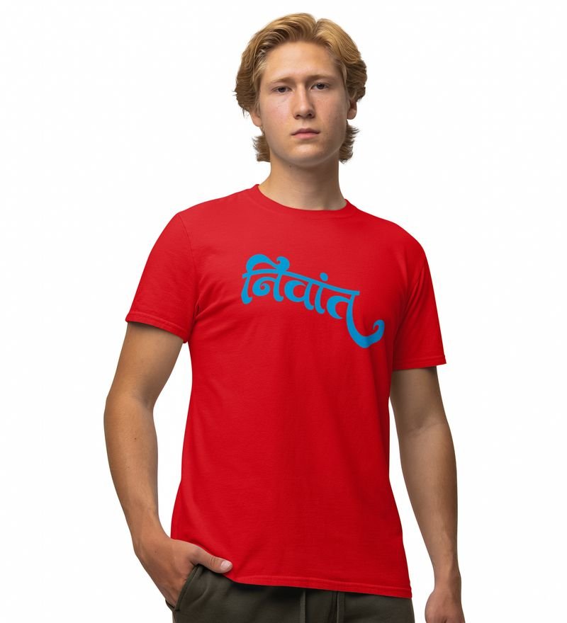 Peacefully Red Round Neck Cotton Half Sleeved Men T Shirt with Printed Graphics