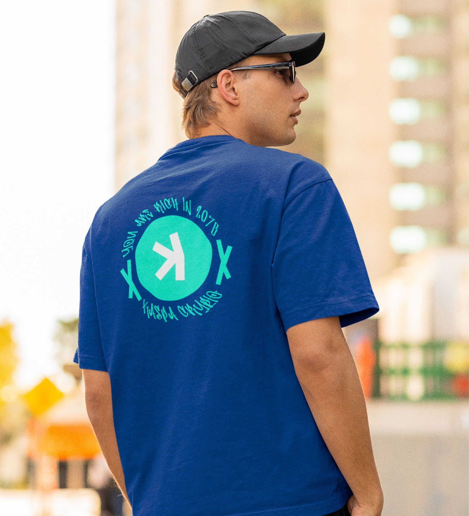 Rich In 2078 Wings Blue Round Neck Cotton Half Sleeved Men's T Shirt with Printed Graphics
