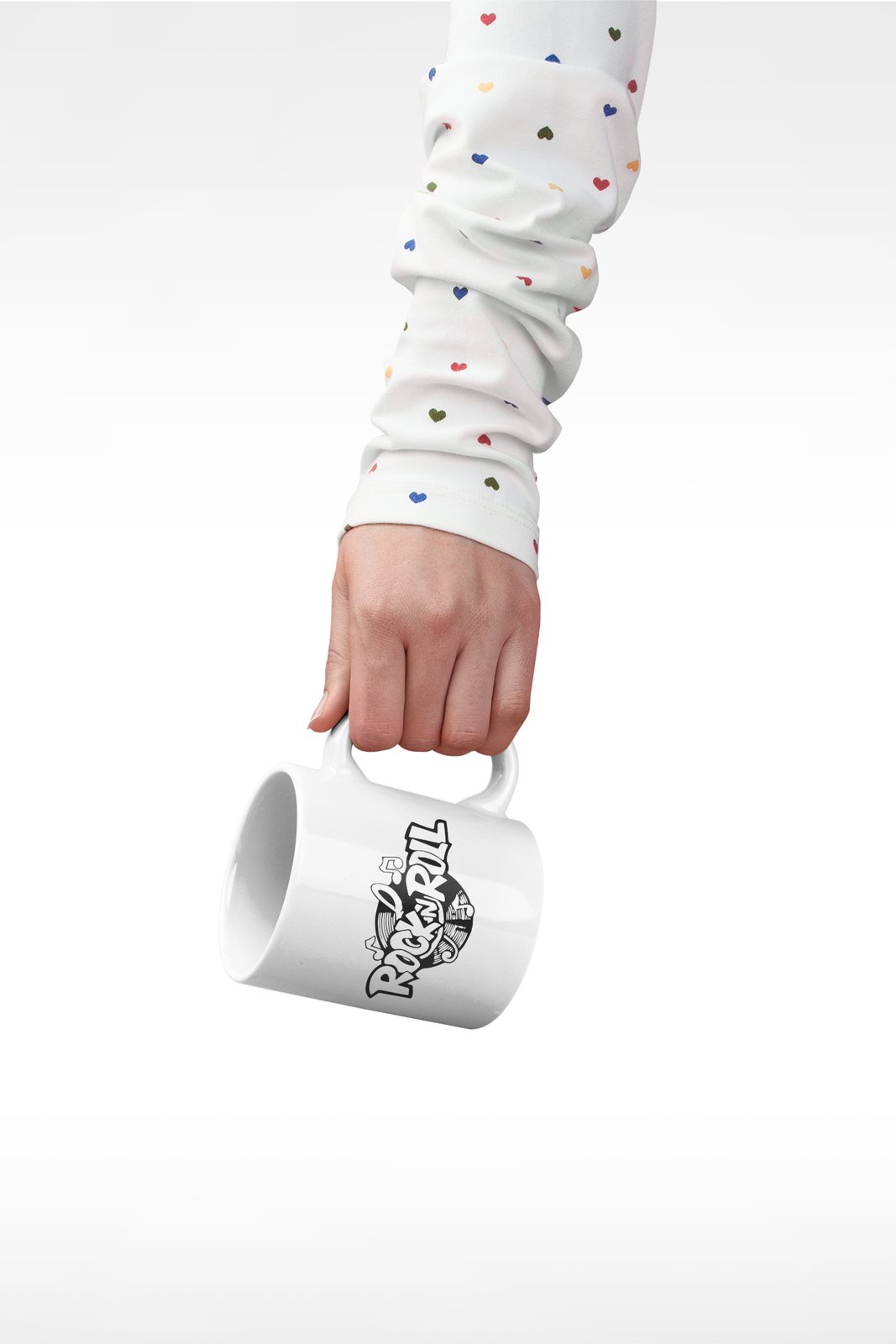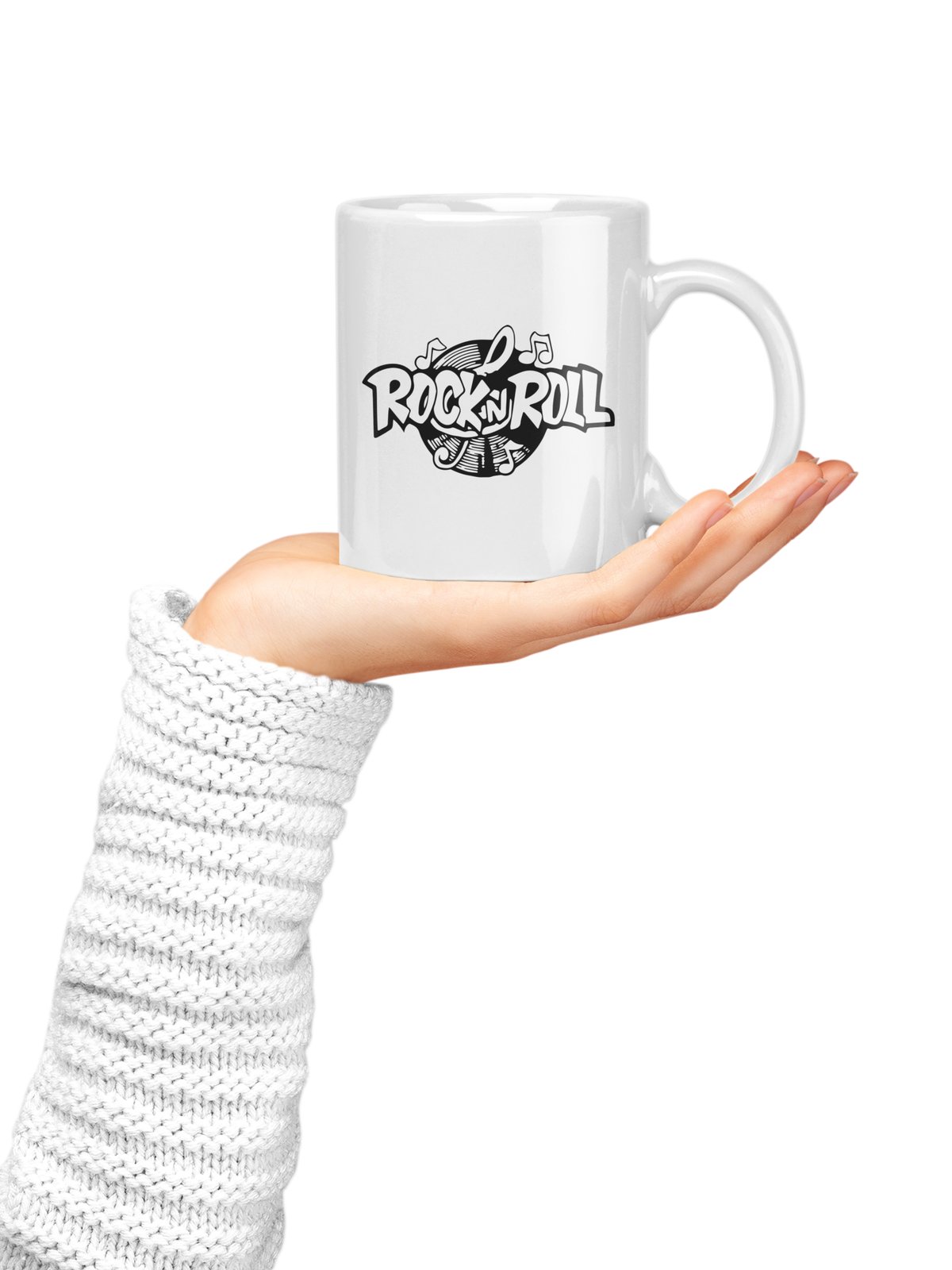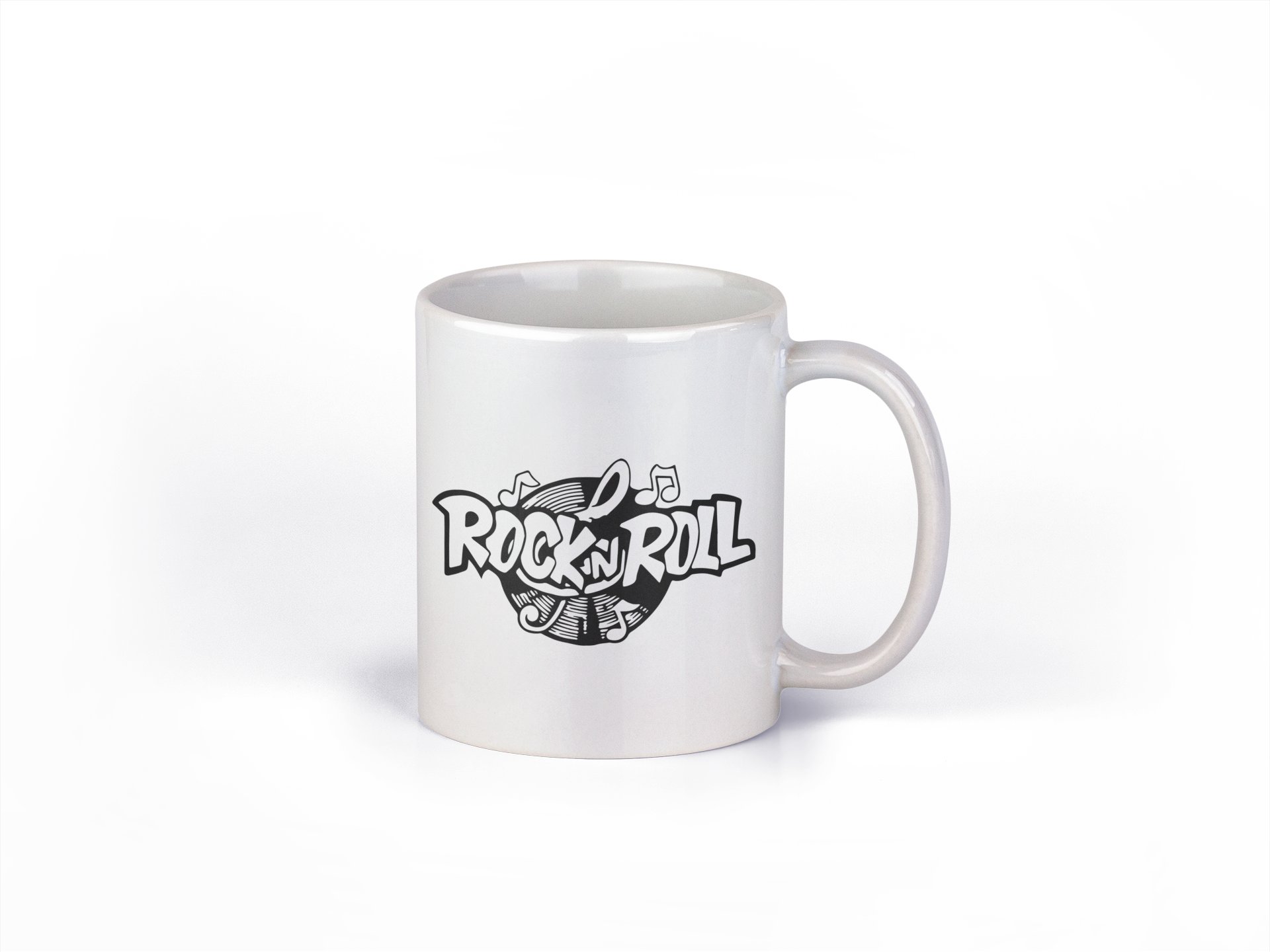 Rock In Roll - music themed printed ceramic white coffee and tea mugs/ cups for music lovers