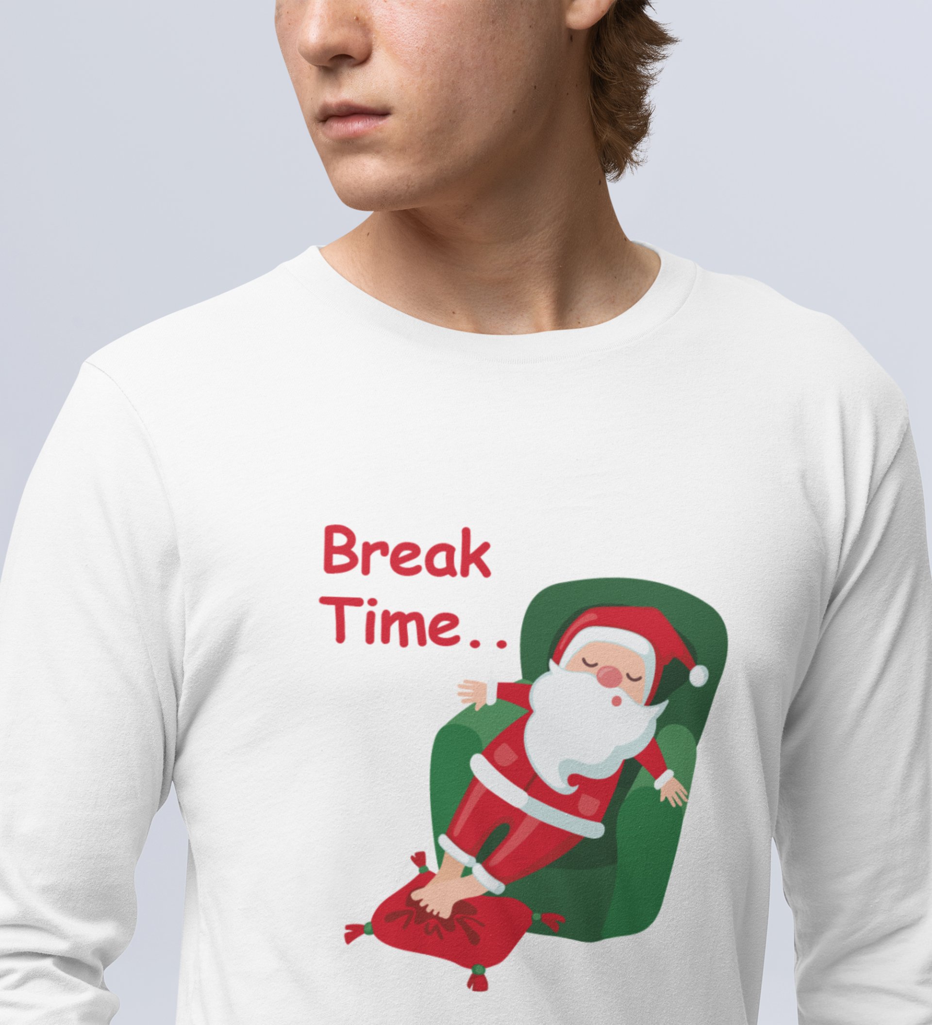 Santa On Break: Funny DesignedFull Sleeve T-shirt White Best Gift For Secret Santa