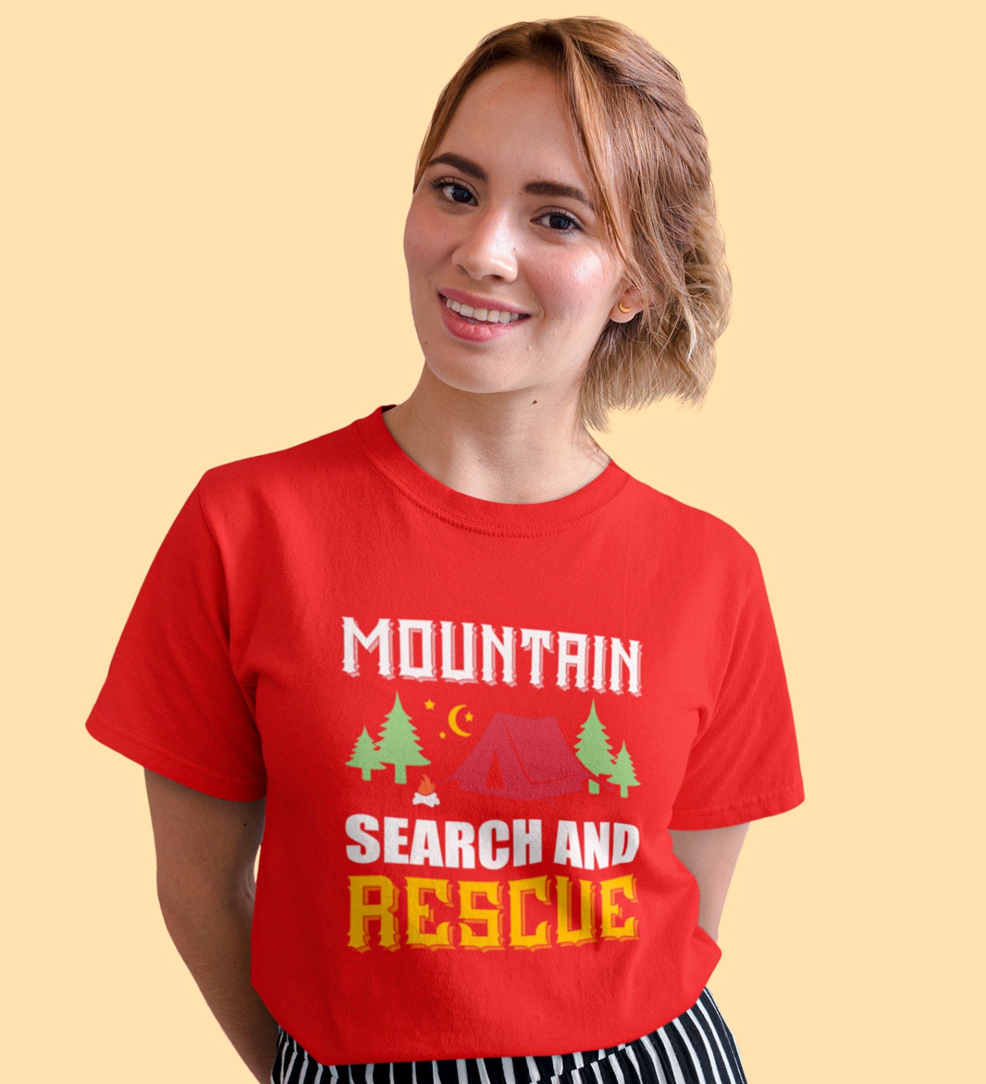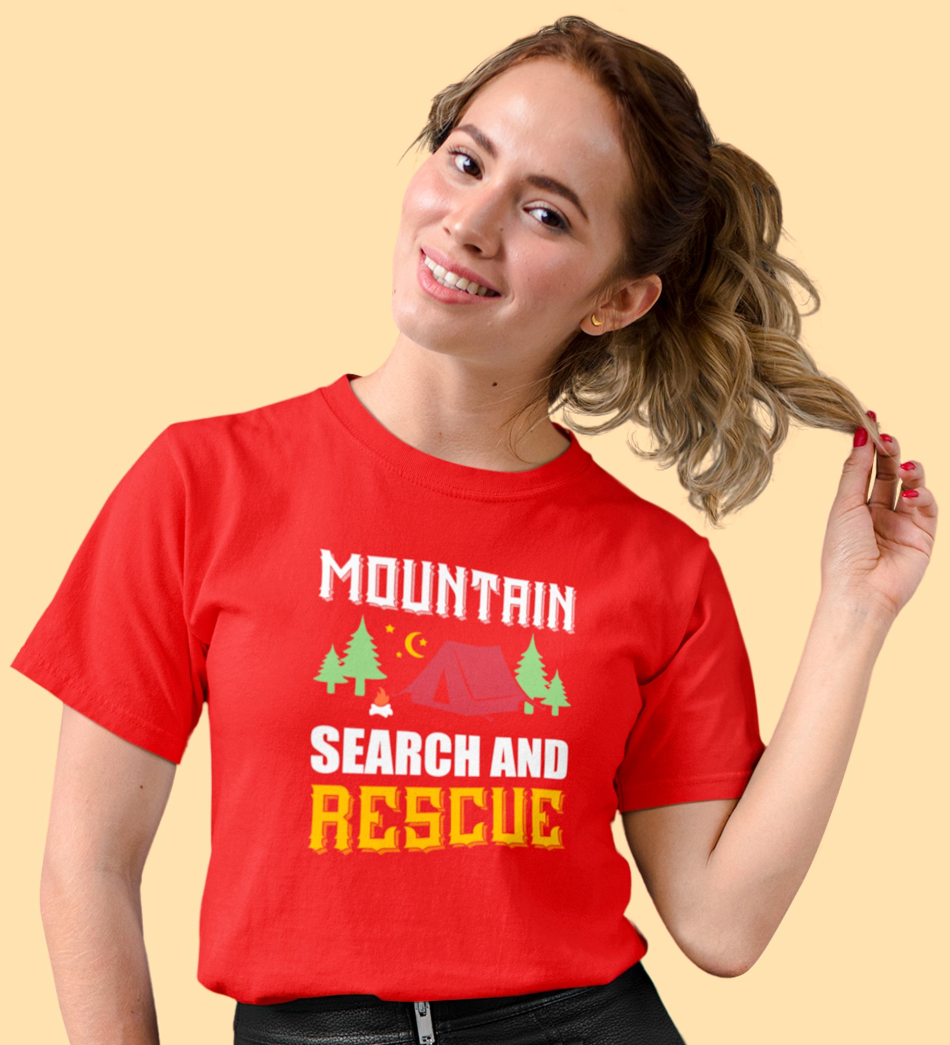 HopOfferSearch And Rescue Red Round Neck Cotton Half Sleeved Women's T-Shirt with Printed Graphics
