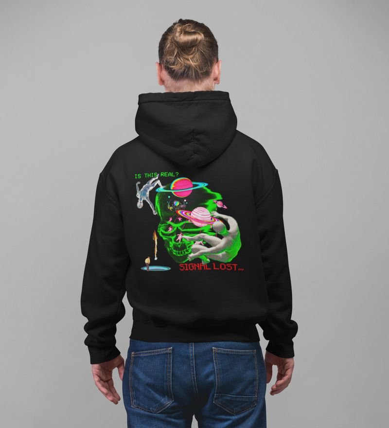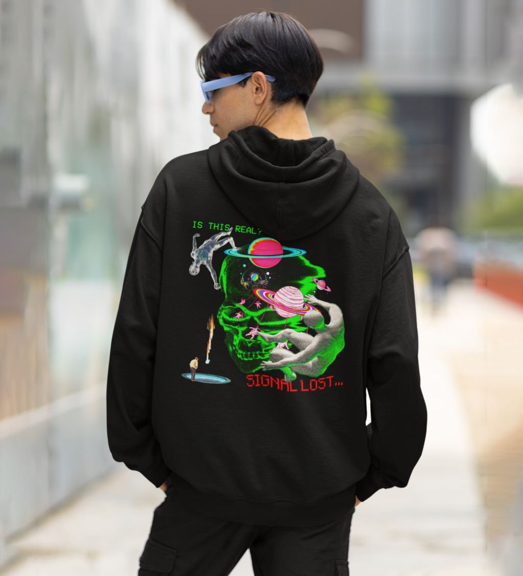 Signal Lost Disconnect and Relax Black Cotton Printed Hoodies For Men