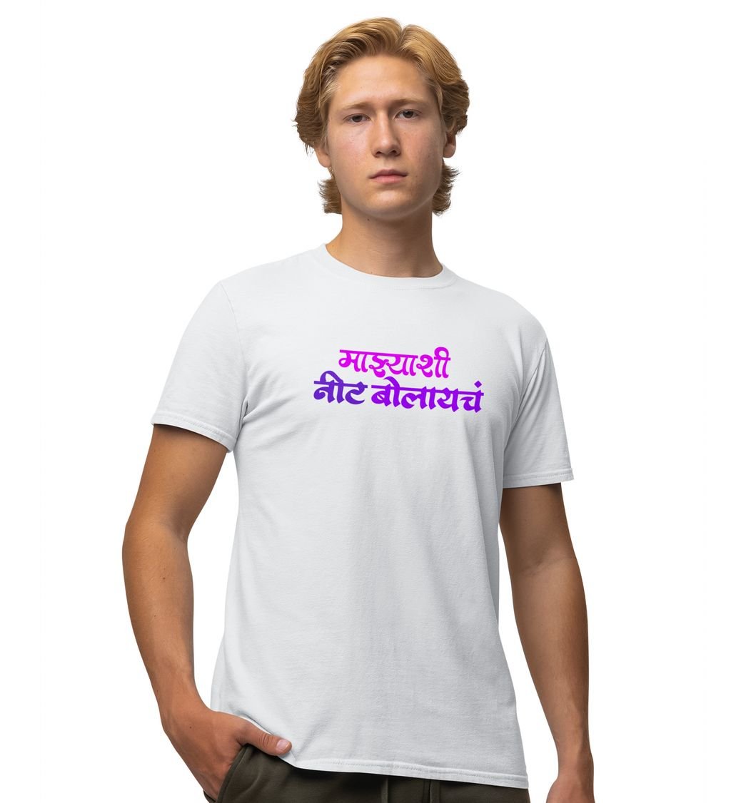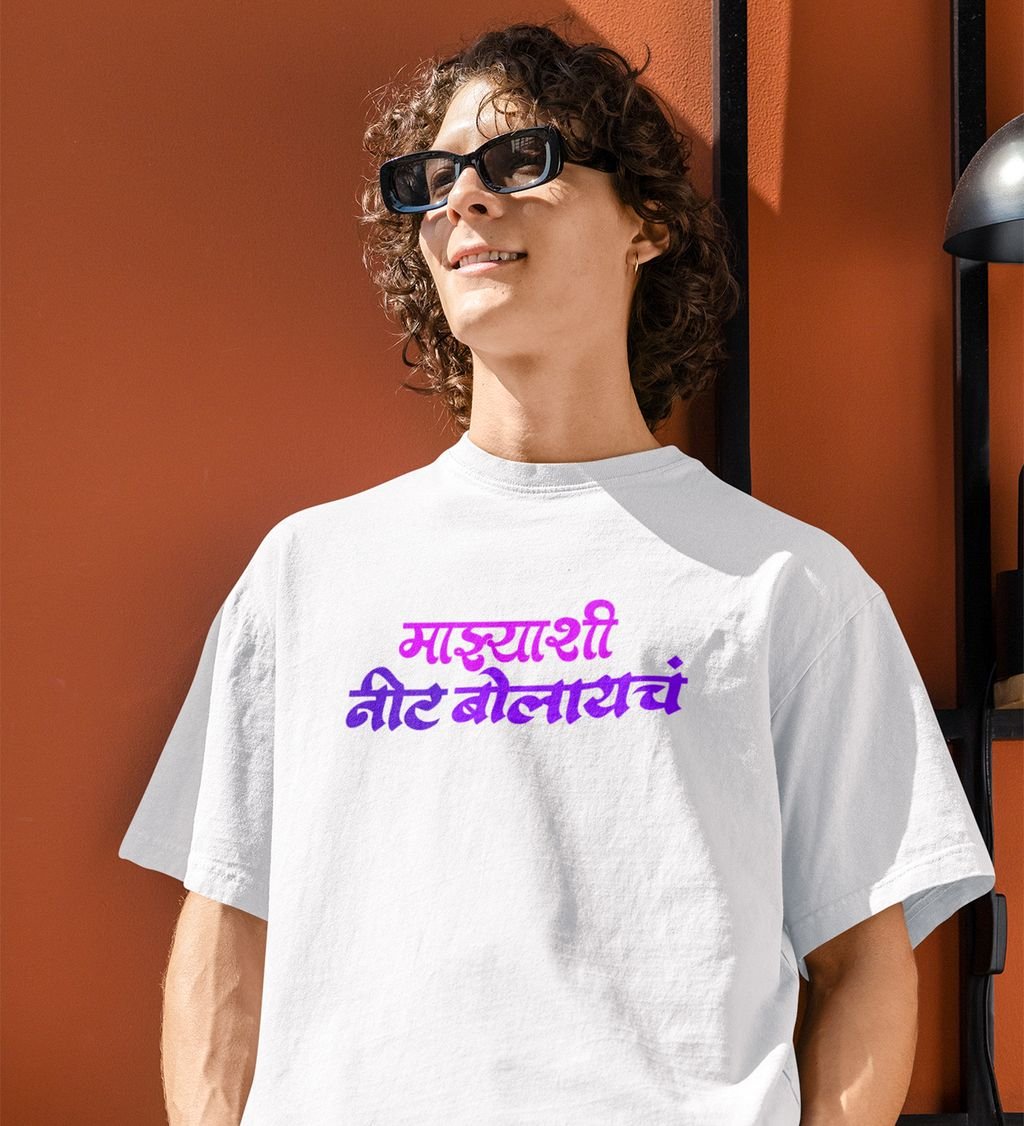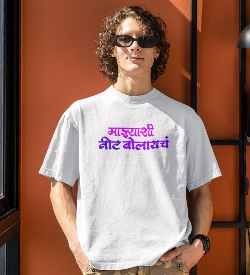 Celebrate the vibrant spirit of Mumbai with our the bold Marathi typography this shirt is perfect for those who take pride in their city Made from soft high quality fabric it ensures all day comfort Wear it to show off your love for Mumbai
