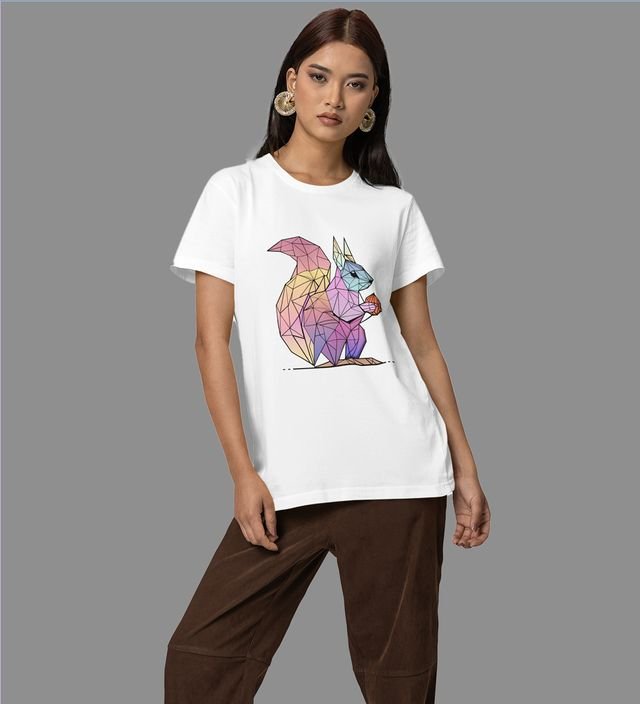 Squirrel of Pastel Realms: Graphic Printed White T-Shirt
