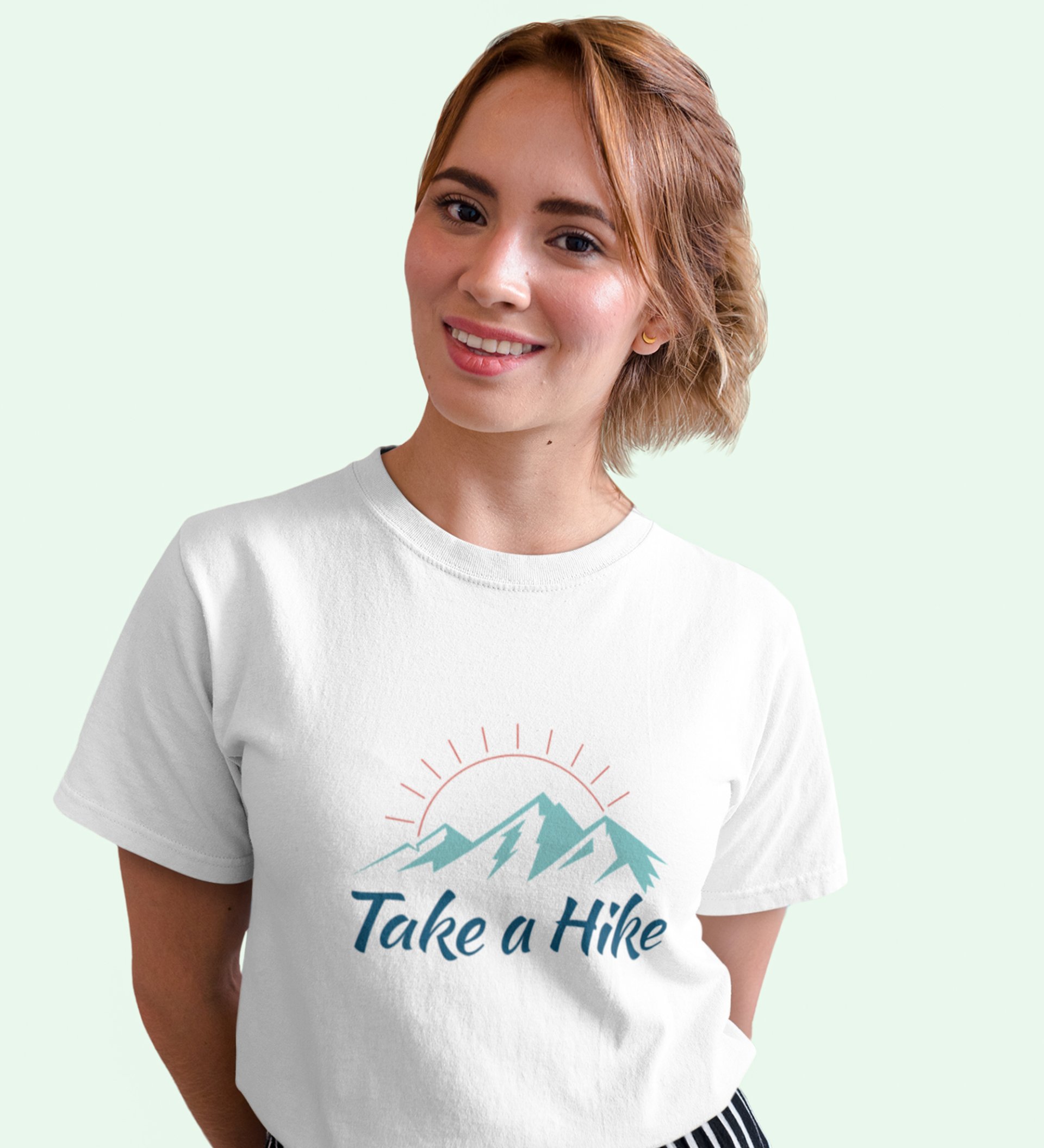 Take A Hike White Round Neck Cotton Half Sleeved Women's T-Shirt with Printed Graphics